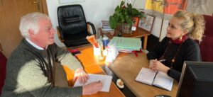 In una mattina di sole splendente, mi accoglie una altrettanto splendente e sorridente sindaco nel suo ufficio in piazza Risorgimento. Un ambiente che richiama dovunque, con poster, foto e repliche estremamente ben eseguite, la cultura che innegabilmente è a fondamento della cittadina di Cerveteri che ha una storia millenaria. Una cultura che va dall’archeologia richiamata dalle immagini stupende della necropoli della Banditaccia e dei famosissimi vasi di Eufronio poste sulle pareti alla storia con foto del centro storico medievale alla presenza musicale con poster che ricordano l’impegno ad livello dalla classica al rock con il calendario delle esibizioni estive di artisti e gruppi di richiamo nazionale e della banda cittadina. Una cultura che viene ritratta anche da immagini di vita dalle sagre, eventi che richiamano cultori dei prodotti tipici del territorio. Insomma si nota la preparazione ed il gusto dell’architetto sindaco, non fosse altro per il vezzo di avere voluto spostare un oggetto di servizio dalla scrivania, per consentire foto migliori.