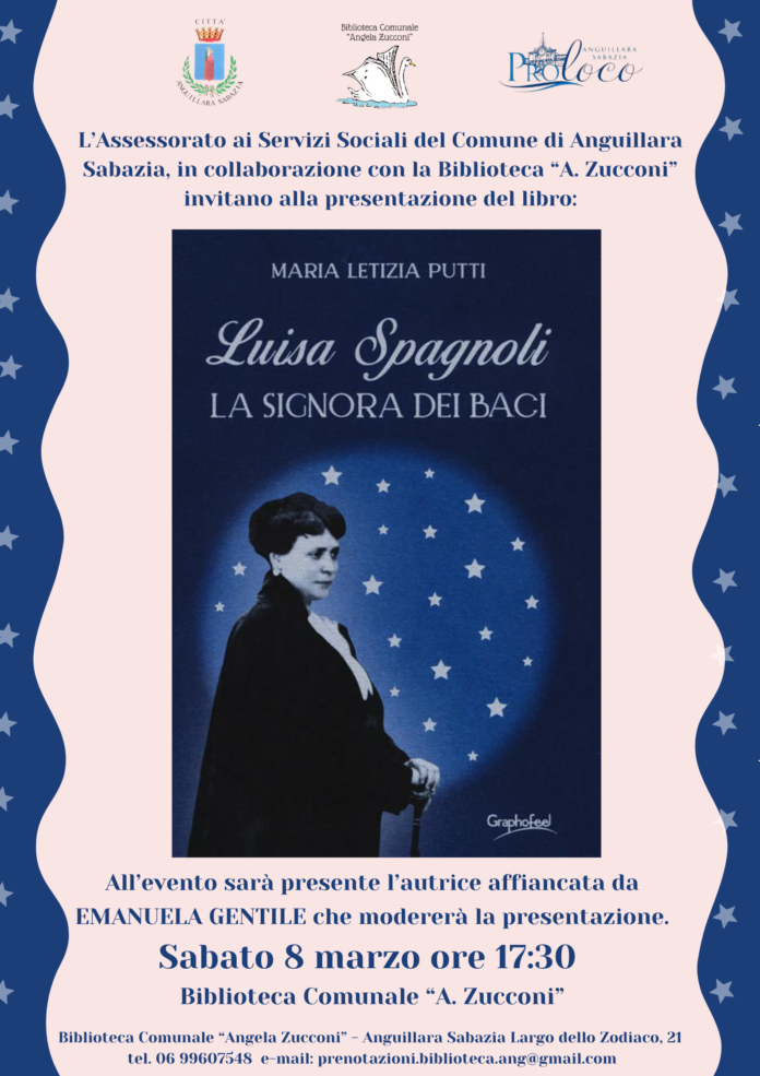 Anguillara, libri, l’8 marzo appuntamento con “Luisa Spagnoli, la signora dei baci”