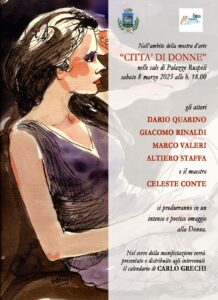Sabato 8 marzo sarà il turno di un momento tradizionale di Cerveteri: alle ore 18:00 Carlo Grechi presenterà l’annuale “Calendario della Donna”, un’opera sempre molto attesa e che da tantissimi anni porta bellezza e colore nelle case, negli uffici e nelle attività commerciali della città. A lui, seguiranno le letture di Dario Quarino, Giacomo Rinaldi, Marco Valeri e Altiero Staffa, magistralmente accompagnato al pianoforte dalle composizioni del Maestro Celeste Conte.