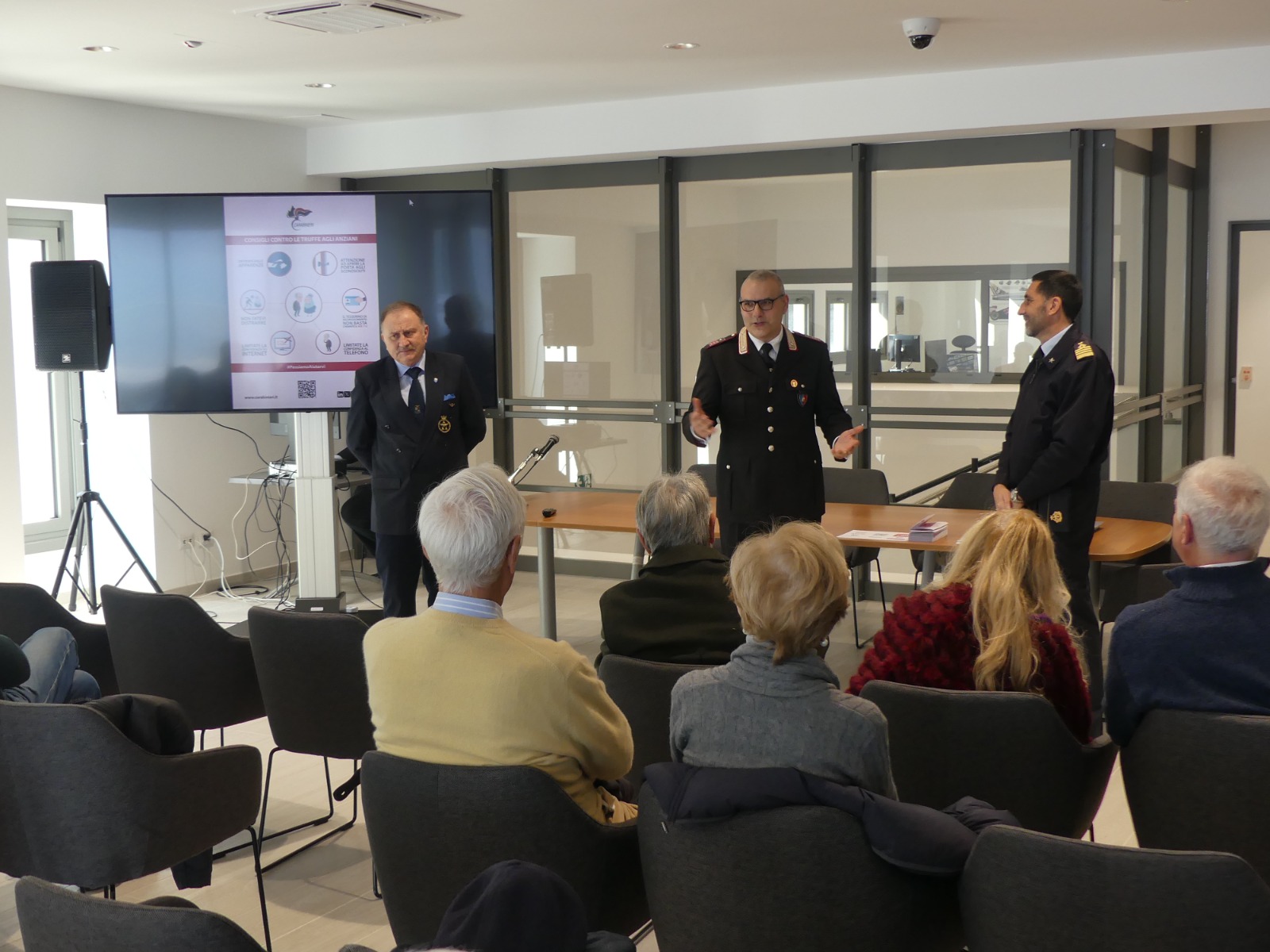 Dal pubblico pervengono numerose domande: quali strumenti utilizzare per colpire segnalare, punire questi truffatori? Perché non agire esaminando chi c’è dietro l’acquisto di una scheda telefonica? tra tante brave badanti vi è stata qualcuna che, facendosi una copia delle chiavi, si è portata via tutto, anche quanto era di scarso valore, come proteggersi? Il luogotenente è chiaro: questi reati sono perseguibili a querela di parte, dunque, occorre chiedere esplicitamente che i soggetti siano puniti a norma di Legge. Le schede telefoniche utilizzate sono spesso acquistate all’estero per cui è difficile individuare l’acquirente, oltretutto la ricerca comporta un onere elevato per cui la vittima, molto spesso, decide di non procedere. Innanzitutto dobbiamo ascoltare quei segnali che ci indicano che qualcosa di non ordinario ci sta accadendo. Anche i messaggi inviati da una banca non vanno aperti, né vanno cliccati i link di accompagno, meglio recarsi in banca e verificare la veridicità di quanto ci viene richiesto di fare. Qualcuno chiede: ma se è un carabiniere a bussare alla porta, lo faccio entrare? Ognuno sa se si è messo in condizione di dover essere soggetto a perquisizione urgente dei carabinieri; ma, in linea generale, l’urgenza di entrare in casa può essere determinata solo in caso di verifica sul possesso di armi. Il truffatore sa come generare ansia, attesa, nell’animo della vittima, in tal caso meglio non farsi prendere dalla fretta, meglio non agire, piuttosto occorre chiamare il 112 per consultarci con la centrale operativa di zona che ci darà riscontro e non esiterà ad aiutarci.
