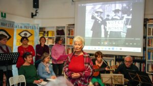 Tante le emozioni durante le letture a tema e canti popolari con il gruppo “Le Canterine”, diretto da Emanuela Marrucci, accompagnato da Luca Caputo.