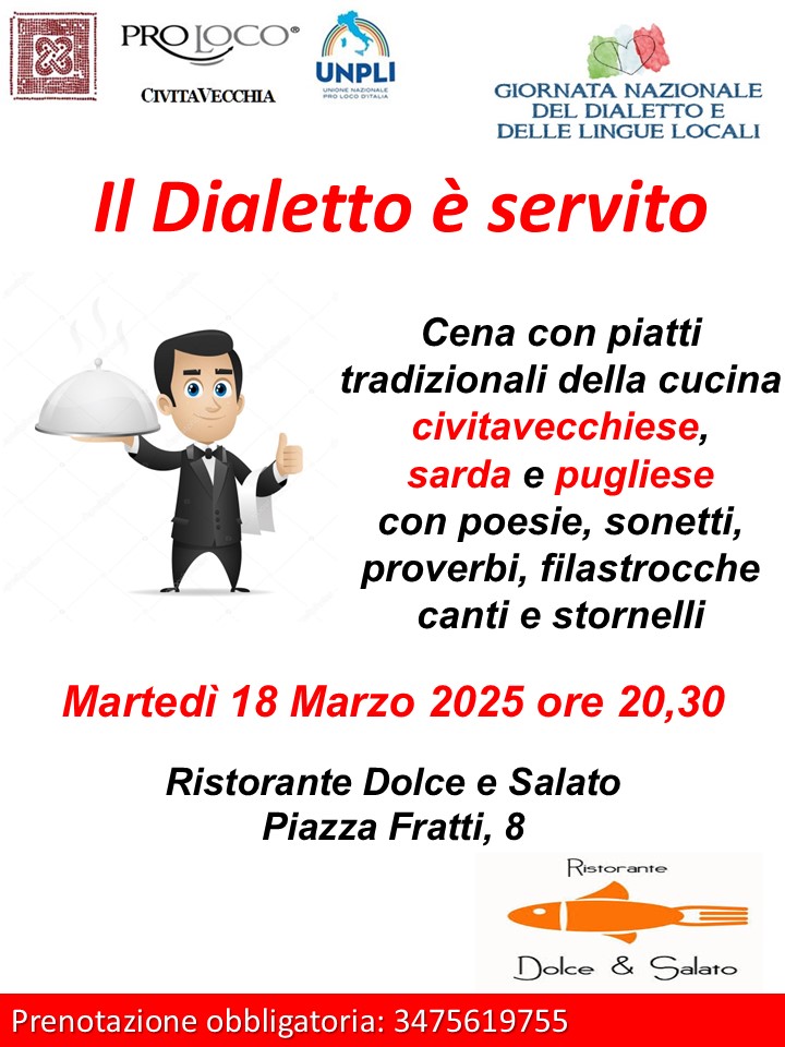 La storia dei dialetti italiani è, per molti versi, la storia stessa della nostra lingua. Infatti, l’italiano deriva dal latino, così come dal latino discendono i dialetti che si parlano in Italia. Il dialetto oggi, non è più lo strumento esclusivo di comunicazione quotidiana come negli anni passati, tuttavia racchiude ancora quel potenziale espressivo a cui si ricorre in maniera naturale ogni volta che per esprimere meglio i sentimenti racchiusi nei concetti inseriamo nel discorso termini dialettali. Un patrimonio culturale da tutelare e valorizzare in quanto portatore di un immutabile senso di identità e comunità. A tale scopo l’UNPLI (Unione Nazionale delle Pro Loco Italiane) ha istituito nel 2013 la Giornata nazionale del dialetto e delle lingue locali con il preciso intento di sensibilizzare le istituzioni e le comunità locali attraverso una rassegna di eventi promossi dalle Pro Loco dell’intera penisola. In questa direzione va l’iniziativa dal titolo: “Il Dialetto è servito” promossa anche quest’anno dalla Pro Loco cittadina, in collaborazione con Patrizia Manunza Lady Chef del ristorante Dolce & Salato e con il Dr. Ettore Serra Presidente della Sarda Domus.