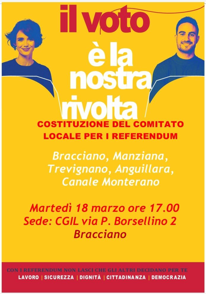 Martedì 18 marzo si è svolta presso la sede della Cgil Spi di Bracciano la prima riunione territoriale per costituire il comitato referendario in vista delle prossime votazioni indette per le giornate dell’8 e 9 giugno