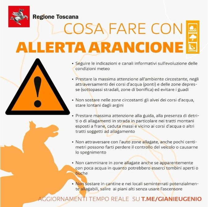Mentre per la regione Toscana, in particolare Firenze e l’area metropolitana, il bollettino pubblicato dal Centro Funzionale Regionale prevede un’allerta di tipo arancio, per rischio idrogeologico e idraulico dalle 7 di sabato 22 marzo alle 23.59 di sabato 22 marzo.