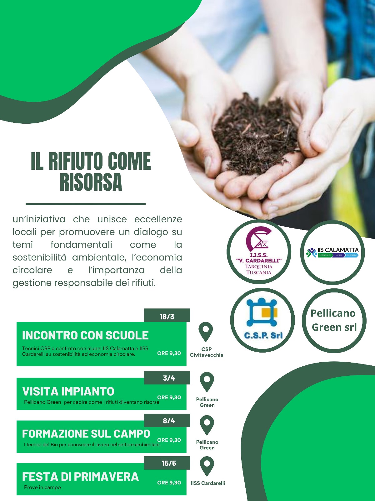 L’iniziativa è promossa da C.S.P. Srl, Pellicano Green Srl e gli istituti scolastici IIS Calamatta di Civitavecchia e IISS Cardarelli di Tarquinia e Tuscania, con un programma articolato in più appuntamenti: