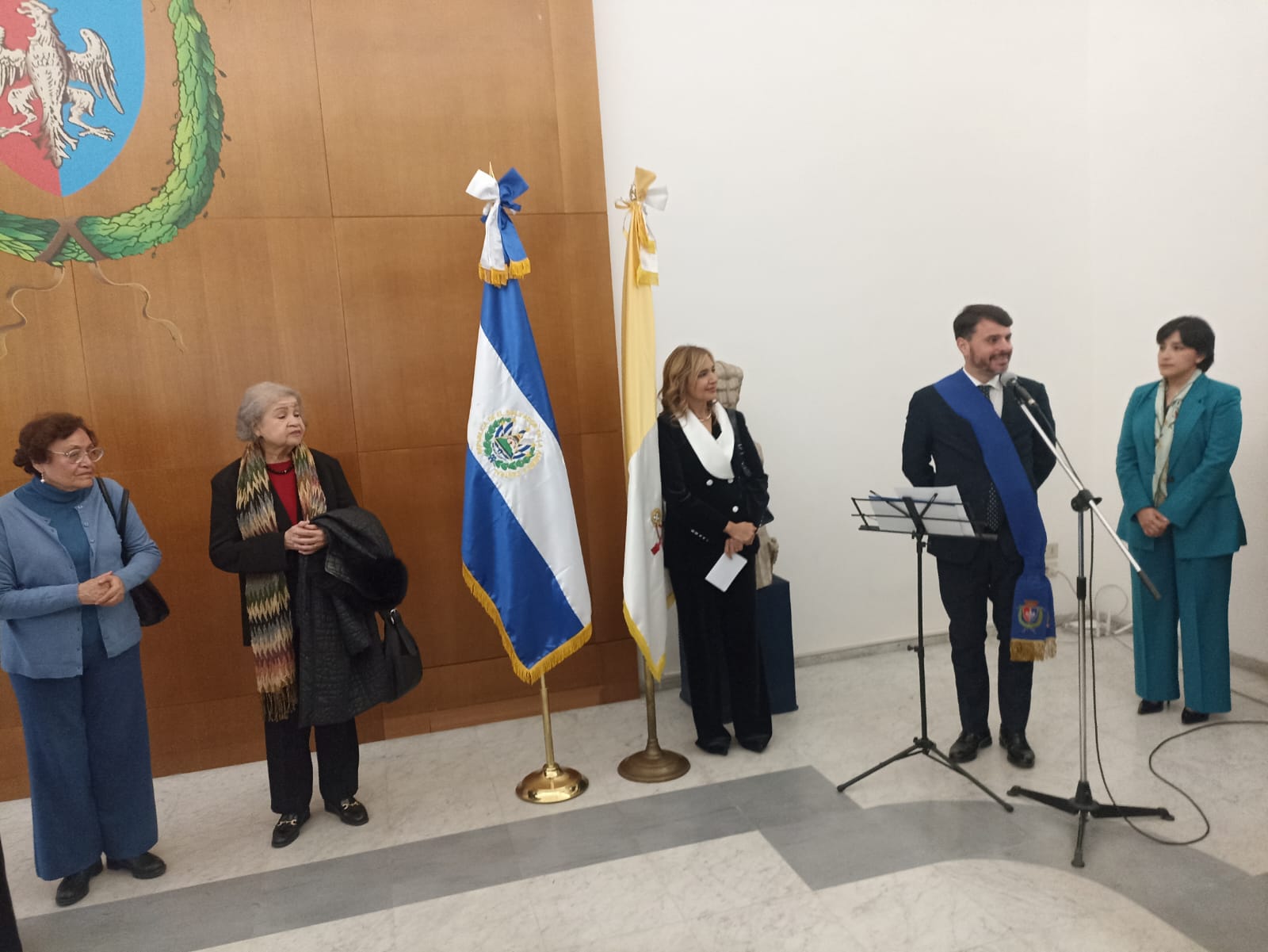 Inaugurata a Palazzo Valentini la mostra di pittura “Simmetria Divina”, ispirata al Giubileo 2025 dell’artista salvadoregna Gothy Lopez, visitabile fino al 2 aprile in Sala della Pace. Presenti al Vernissage il Consigliere di Roma Capitale e di  Città metropolitana Mariano Angelucci, S.E. Anabella Machuca, Ambasciatore di El Salvador presso la Santa Sede e Mons. Francisco Díaz Tenza, rappresentante della Segretaria di Stato della Santa Sede.