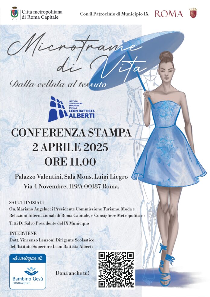 La Città metropolitana di Roma Capitale, con il patrocinio del Municipio IX di Roma, è lieta di annunciare la conferenza stampa di presentazione dell’evento “Microtrame di vita – dalla cellula al tessuto”, un fashion show che si terrà il 10 aprile alle ore 17.30 presso La Vaccheria, in Via Giovanni l’Eltore, 35 – 00144 Roma.