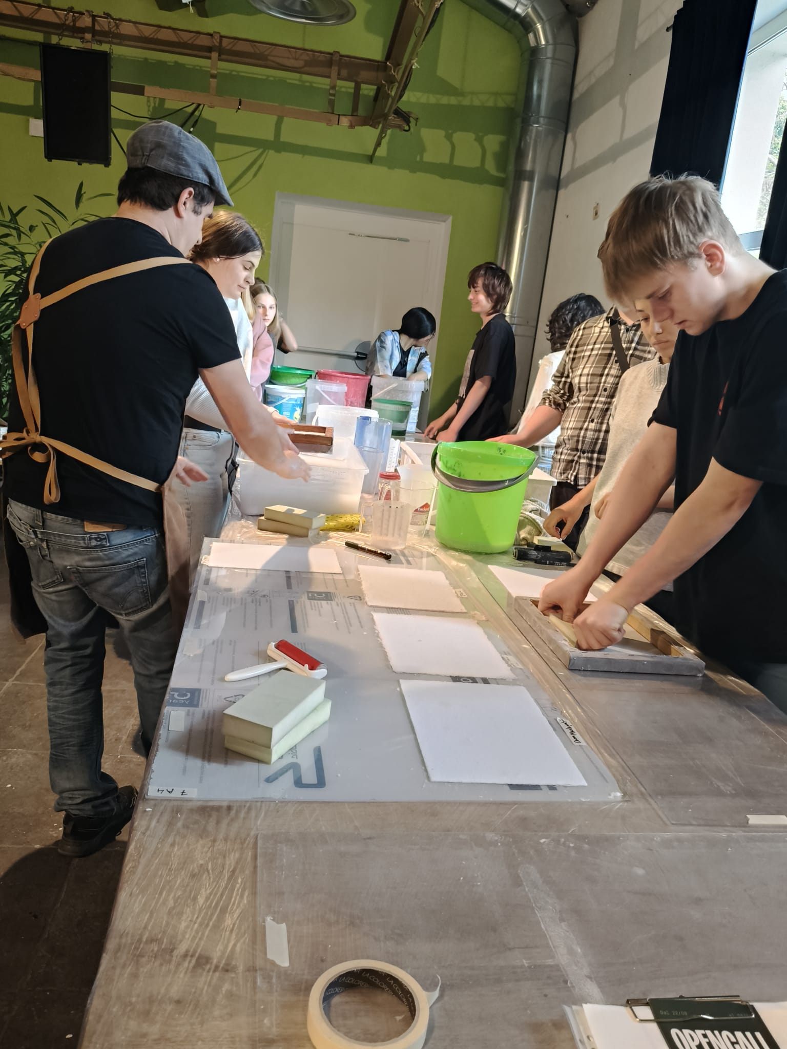 Nel pomeriggio, presso la Porta del Parco, si è svolto un laboratorio creativo dedicato alla carta fatta a mano a cura di Cartiera Romaniello, durante il quale gli studenti hanno sperimentato in prima persona il processo di creazione di fogli riciclati. L’attività ha mostrato come materiali di scarto possano trasformarsi in nuove risorse utili, sensibilizzando i giovani sull’importanza del riuso. Il laboratorio si è articolato in diverse fasi: i vecchi fogli sono stati selezionati per rimuovere eventuali impurità, sminuzzati e immersi in acqua per ammorbidirli, facilitando così il processo di riciclo. Successivamente, la carta è stata frullata con acqua fino a ottenere una polpa omogenea, poi versata su un setaccio per eliminare l’eccesso di liquido. Il foglio appena formato è stato quindi lasciato ad asciugare su un tavolo e, una volta pronto, sarà rifinito per essere riutilizzato. Il risultato finale è stato un foglio artigianale, perfetto per scrivere, disegnare o dare nuova vita alla carta usata. Oltre all’esperienza pratica, il laboratorio ha rappresentato un’importante occasione per riflettere sul valore del riciclo e sulle strategie per ridurre l’impatto ambientale, incoraggiando nei giovani una maggiore consapevolezza delle proprie abitudini quotidiane.