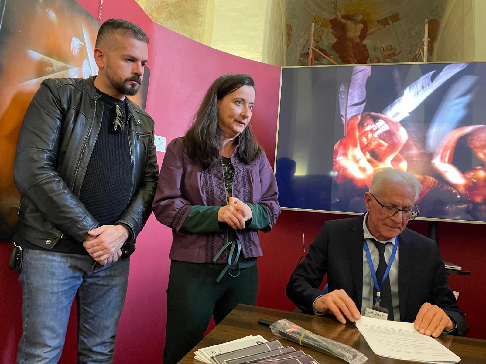 All’interno del complesso universitario, i due chiostri, rimandano a luoghi dove il passato si fonde armoniosamente con il presente, dove il silenzio della meditazione monastica di altri tempi accoglie la cultura contemporanea, hanno fatto da sfondo alla Esposizione e al “Simposio” del nuovo Movimento Artistico SpazioTempismo.