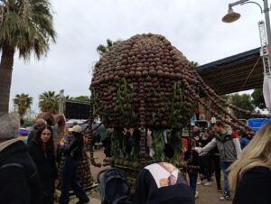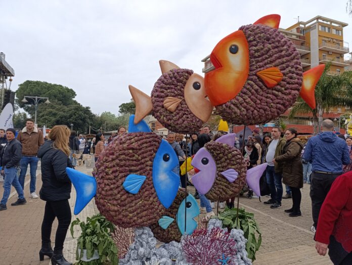 Nella piazza centrale, poi, le famose composizioni realizzate con i carciofi: quest’anno tra mongolfiera e un enorme cuore, a vincere è stata Splash, tre pesci che riportano il mare al centro.