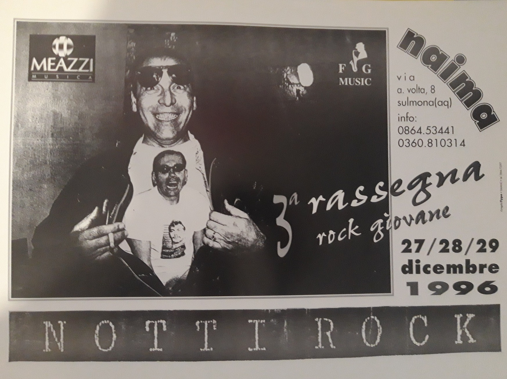Il Naima è stato per Sulmona e il Centro Abruzzo il locale rock per eccellenza, colmando un vuoto che risaliva almeno dalla fine degli anni ’60. Partito come locale jazz, nel giro di poco tempo il numero di persone che circolò dentro e fuori il locale crebbe a dismisura e con loro anche la fama. Nato dall’intuizione di Domenico Leone e Paolo Meniconi sulla volontà di offrire in città una proposta musicale adatta al mondo dei club, il Naima divenne ben presto un crocevia di artisti indipendenti più o meno noti sulla scena nazionale. Da ricordare per esempio il concerto della punk band Senzabenza (al tempo spalla dei tour italiani dei Ramones), o i Mr. Igor, che proponevano le canzoni di un allora ancora sconosciuto Alex Britti. Ma il locale divenne ben presto il palco per i sogni di gloria di tante band locali e non solo. Ne furono una conferma le varie edizioni della rassegna “Notti Rock”, che ha visto alternarsi sul palco band come MG14, Mr. Chipsters, Nameless, Attn’ Kiff, Figurine Mancanti, Mescalina, Le Voglie di Maria, Amanithe, Rotten Sound, Angry Noise, Freedom, Fuck’N’Fun, Stoned, No Future, Beehive, 3M, Edipo e il suo complesso, No More Fear, P38KS, Linea d’uscita, Lybra, Teddy Beers, Leve Eve Leave, Miasma oltre che di fuori città come gli Intifada di Pescara, i Carrion di Teramo, Sotto l’albero ci piove di Castel di Sangro, gli Hogun di Pescara, i Gerky Monkey di Terni, i Condanna di Lanciano, i Meat For Dogs di Catanzaro, i Sacral Death di Bari, i Blood Stained Host di Bussi sul Tirino, i Monofase di Roma e tanti altri.