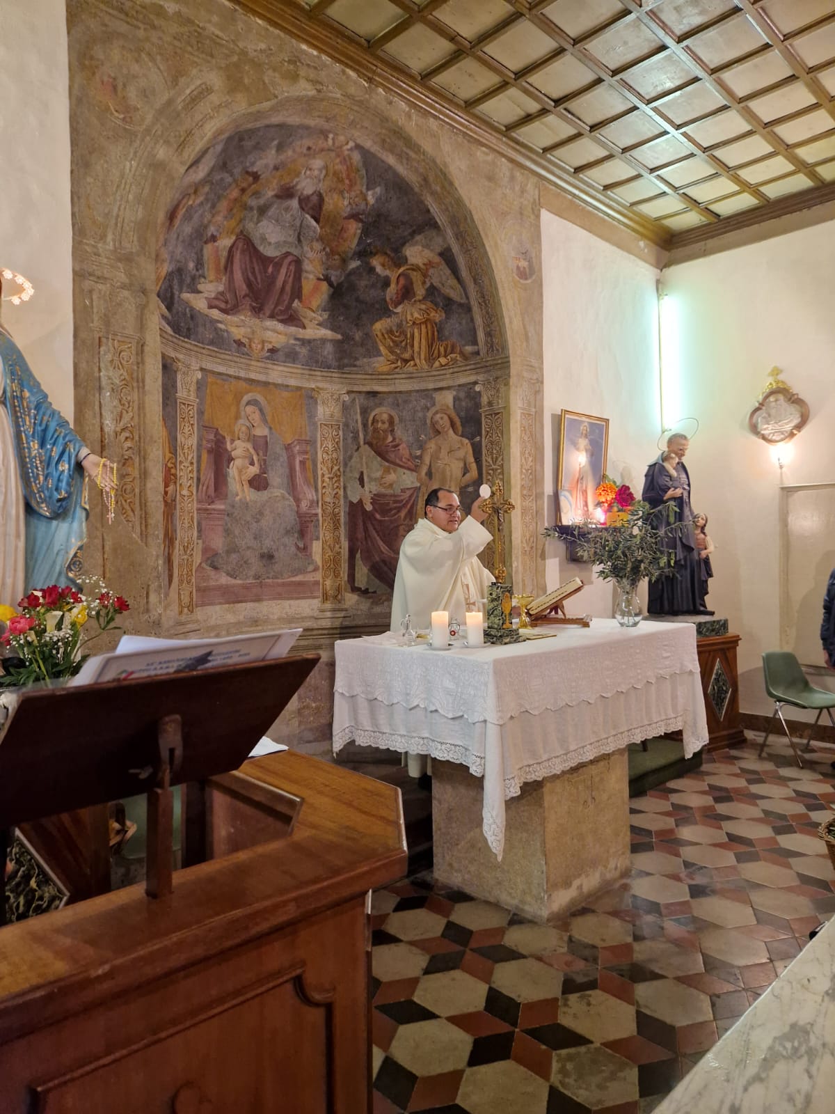 Interpellato il Parroco Don Francisco De Macedo, ha accolto subito con entusiasmo la richiesta, ( che già dal suo insediamento il Presidente, con il benestare del Parroco è stato celebrato per una volta al mese costantemente la Santa Messa nella Cappella), disponendo il Precetto Pasquale il 14 aprile 2025 alle ore 16,00.