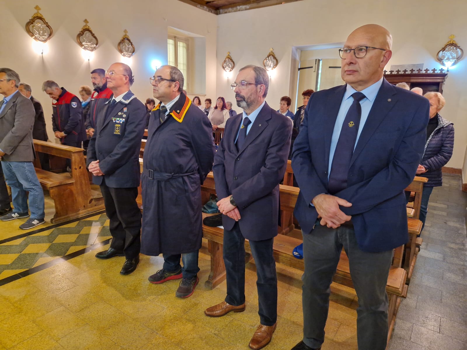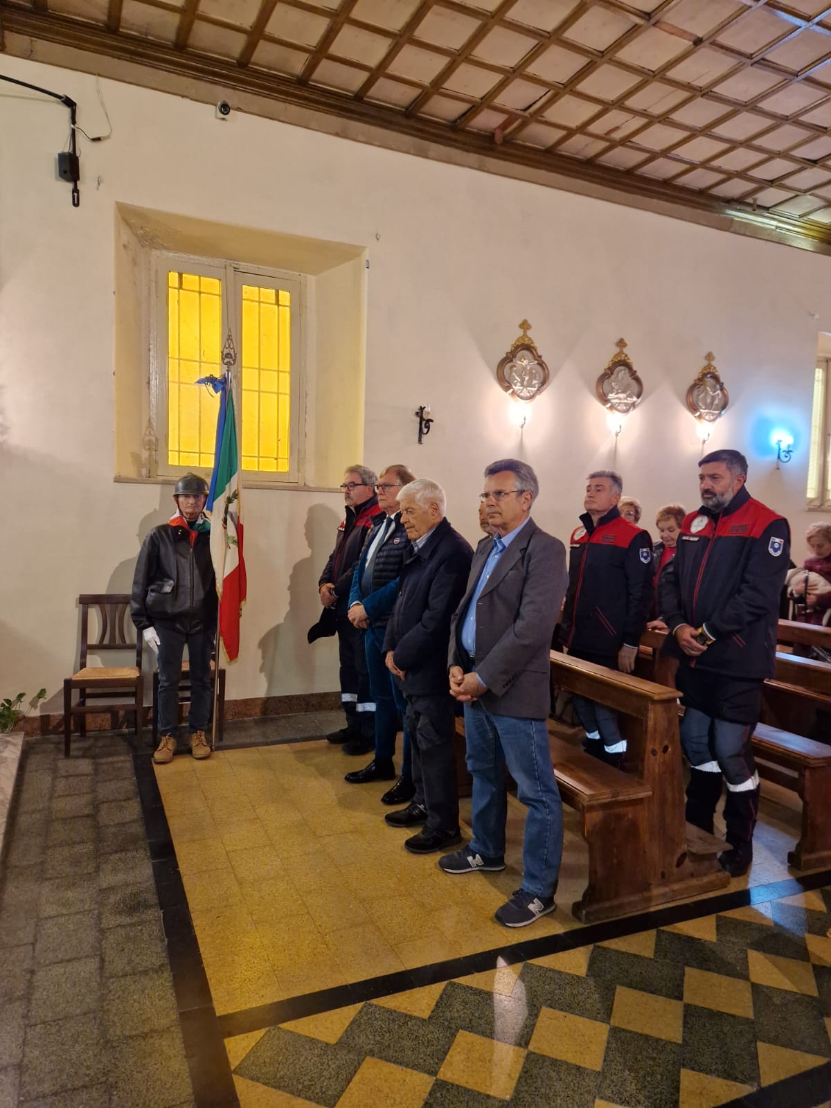 Il Presidente insieme ai suoi collaboratori, procedevano per gli inviti, infatti alla data odierna erano presenti: il consigliere comunale Alessandro Ambrogi, il Presidente dell’Associazione Carabinieri d’Italia Giovanni Ciraulo e un gruppo di volontari in divisa sociale, Presidente dell’associazione A.N.A.R.T.I. Col. Claudio Caporali, Vice Presidente A.N.M.I. Lgte Giuseppe Campisi, rappresentanti dei Presidenti con soci delle associazioni d’Arma, rappresentanti del Sacrario, dei Combattenti e Reduci con la loro gloriosa bandiera portata dall’alfiere sig. Angelo Lisi, per il nuovo evento alla Chiesa di San Sebastiano.