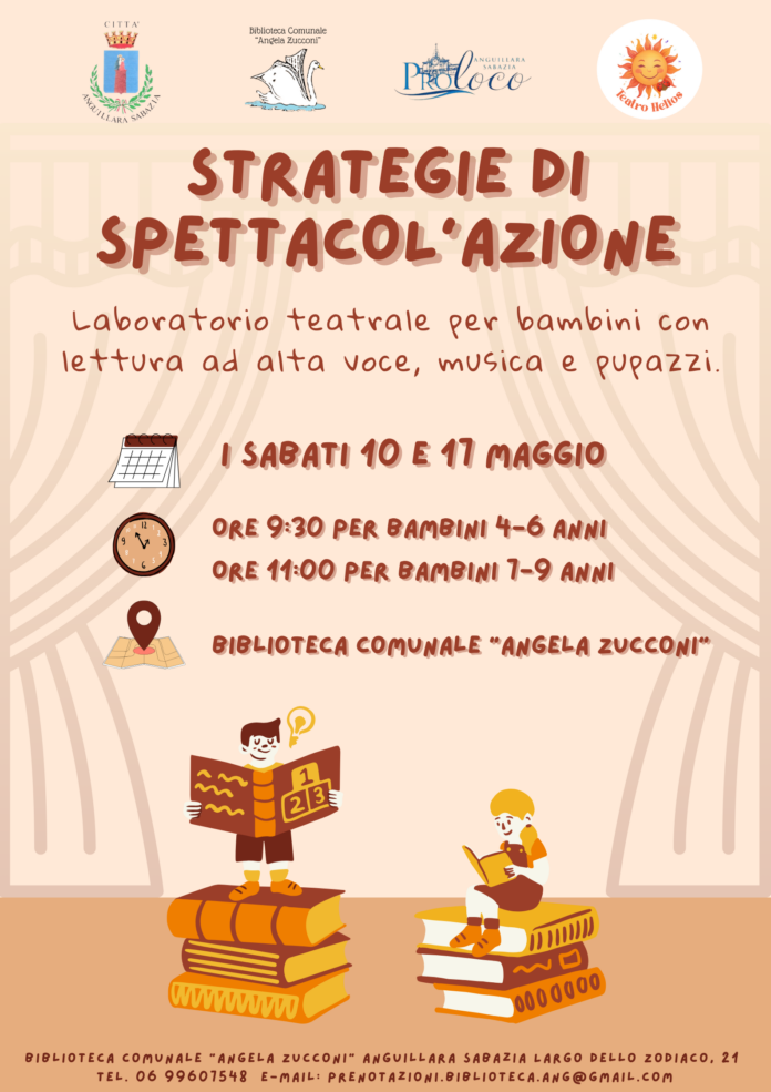 L’Amministrazione Comunale di Anguillara Sabazia e la Biblioteca Comunale “Angela Zucconi” sono liete di invitarvi a “Strategie di Spettacol’Azione”, un progetto teatrale ideato dalla compagnia teatrale di Anguillara Sabazia “Teatro Helios”.