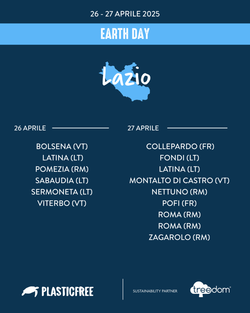 Anche il Lazio sarà protagonista delle iniziative promosse da Plastic Free Onlus per la 55ª edizione dell’Earth Day, la Giornata Mondiale della Terra istituita dalle Nazioni Unite. Il 26 e 27 aprile, l’onda blu dei volontari Plastic Free si attiverà in ben quindici località laziali con eventi di raccolta dei rifiuti e sensibilizzazione ambientale, contribuendo così alla più grande mobilitazione civica nazionale contro l’inquinamento da plastica.