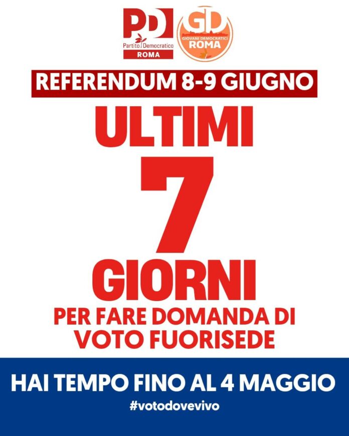 Partito Democratico Roma e Giovani Democratici Roma. Referendum 8-9 giugno. Come fare domanda di voto fuori sede