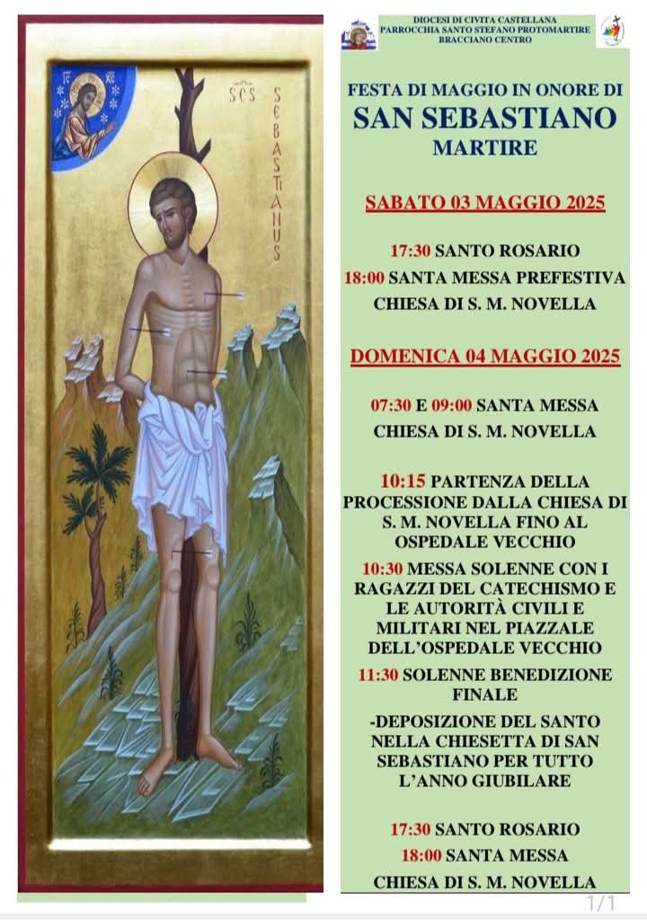 Come nei tempi più antichi, a Bracciano il mese di maggio inizia con tanti eventi ed appuntamenti che uniscono tradizione, cultura, storia, religione, arte e divertimento. Si parte già da giovedì 1 maggio, quando in occasione della Festa dei Lavoratori avrà luogo l’attesa e tradizionale fiera che, come da consuetudine, interesserà la zona alta di Bracciano tra via Mariano Ruggeri, via Carlo Marchi, piazza Don Cesolini, via Antonio Varisco; per l’occasione ci saranno sostanziali modifiche alla viabilità, soprattutto su via Principe di Napoli, a doppio senso di circolazione nell’ingresso della città. Dopo una giornata di leggerezza dedicato agli acquisti di primavera, domenica 4 maggio la popolazione di Bracciano si fermerà a onorare il proprio santo patrono, San Sebastiano. Infatti nonostante da calendario San Sebastiano ricorra il 20 gennaio, la comunità di Bracciano riservava al suo patrono proprio agli inizi del mese di maggio i festeggiamenti principali, mantenendo così in parte l’antica tradizione rinascimentale, quando il santo patrono era onorato per un’intera settimana con fiere, rappresentazioni teatrali, corse di cavalli e quant’altro; ci piace ricordare che la venerazione di San Sebastiano da parte degli abitanti di Bracciano nacque per aver protetto il borgo dalla peste, una storia raccontata nel dipinto di Giacinto Gimignani del 1669 custodito nel Duomo Santo Stefano Protomartire di Bracciano. Negli anni Duemila venne poi ripresa l’antica tradizione di festeggiare in maggio il patrono ed ecco che domenica 4 maggio alle ore 10.15 la statua del santo sarà trasportata in processione fino alla cappella a lui dedicata, presente nel complesso del vecchio ospedale. Alle 10.30 alla presenza delle autorità civili e militari di Bracciano, proprio nel piazzale antistante la piccola chiesetta sarà ufficiata la santa messa, dopodiché la statua del santo sarà deposta all’interno della chiesa, dove sarà lasciata per tutto l’anno giubilare. Un momento che darà anche la possibilità di ammirare un luogo ricco di arte e tradizione solitamente celato a braccianesi e turisti. La cappella dedicata a San Sebastiano, un luogo da curare e valorizzare, custodisce infatti un pregevole e suggestivo affresco realizzato da Antoniazzo Romano. L’affresco raffigura la Madonna in Trono con il bambino, affiancata ai lati da San Pietro, San Paolo e San Sebastiano, appunto. Agli antichi festeggiamenti dedicati al patrono, farà poi da cornice, sempre domenica 4 maggio, La Festa della Primavera. Una manifestazione, organizzata da l’associazione commercianti, che riempirà di colori e profumi le strade del centro cittadino, pedonalizzato per l’occasione. Tanti turisti e residenti avranno così la possibilità di passeggiare, gustando ottimi gelati locali, lungo via Principe di Napoli e perdersi tra bancarelle di oggettistica varia ed espositori di piante, rose, gerani, margherite e quant’altro, passando tra piazza IV Novembre, via Umberto I, piazza Mazzini e andando poi verso via Fausti. Ecco come Bracciano facendo rivivere antiche tradizioni rinascimentali legate agli eventi della religione e della tradizione in questo inizio di maggio offrirà tante opportunità di svago e di arricchimento culturale per le quale passare dei momenti nell’antica cittadina medioevale.