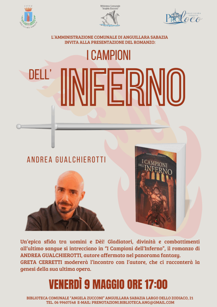 L’Amministrazione Comunale di Anguillara Sabazia e la Biblioteca Comunale “Angela Zucconi” sono liete di invitarvi alla presentazione del libro “I CAMPIONI DELL’INFERNO”.