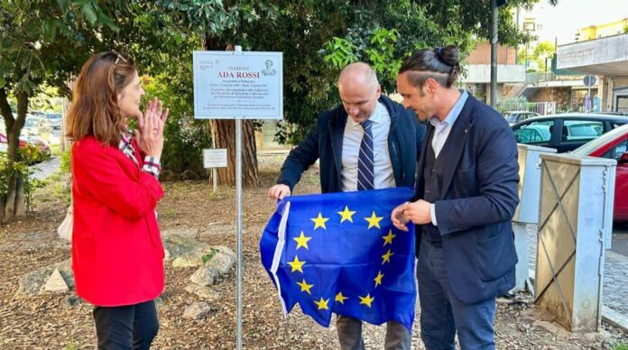 Nel pomeriggio ieri, in occasione della Giornata dell’Europa, i giardini di Piazza Stefano Jacini a Vigna Clara hanno accolto cittadini, istituzioni e rappresentanti del mondo politico per lo svelamento della targa dedicata ad Ada Rossi, partigiana, antifascista ed esponente di spicco del federalismo europeo. Una cerimonia partecipata, carica di significato, che ha reso omaggio a una figura fondamentale della storia repubblicana e dell’Europa unita, proprio nel quartiere in cui Ada Rossi visse fino alla sua morte, avvenuta il 15 giugno 1993.