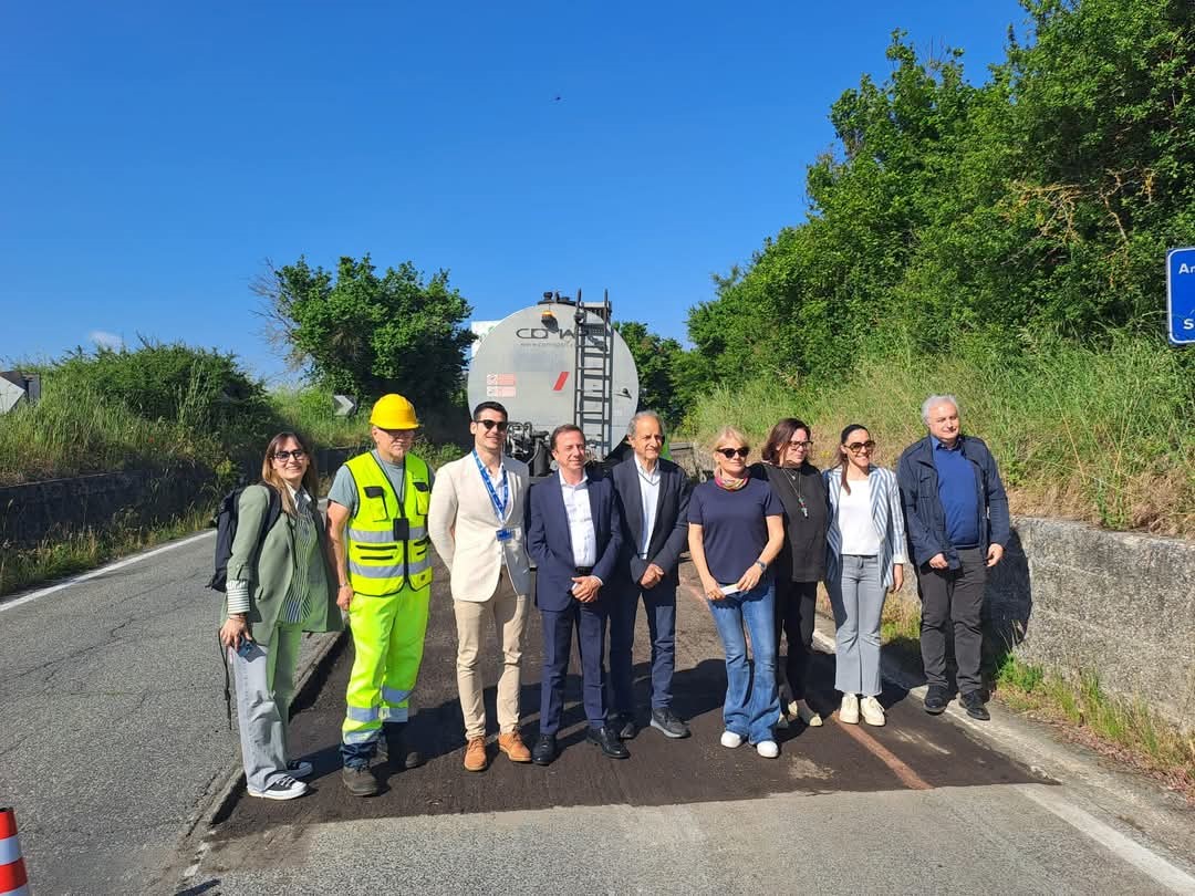 All’apertura del cantiere, la Consigliera metropolitana delegata alla Viabilità, Manuela Chioccia, la Sindaca di Trevignano Romano Claudia Maciucchi e il Vicesindaco di Trevignano Romano Luca Galloni.