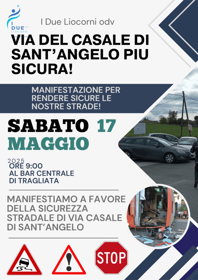 Lo scopo della manifestazione, cui parteciperanno istituzioni del comune di Fiumicino, di Roma, e giornalisti dei media è finalizzata a sensibilizzare i responsabili della manutenzione della stessa via del Casale di Sant’Angelo diventata pericolosissima a causa di numerosi incidenti automobilistici con continui morti e feriti causa le numerose buche nel manto stradale, l’eccessiva velocità, la mancanza di illuminazione, di autovelox, di guard-rail, di linee bianche laterali o centrali, di catarinfrangenti. Vengono anche richieste delle rotatorie nei vari incroci con via di Tragliata e via di Tragliatella, all’incrocio con via Aurelia e all’intersezione di via Braccianese, dopo una curva.