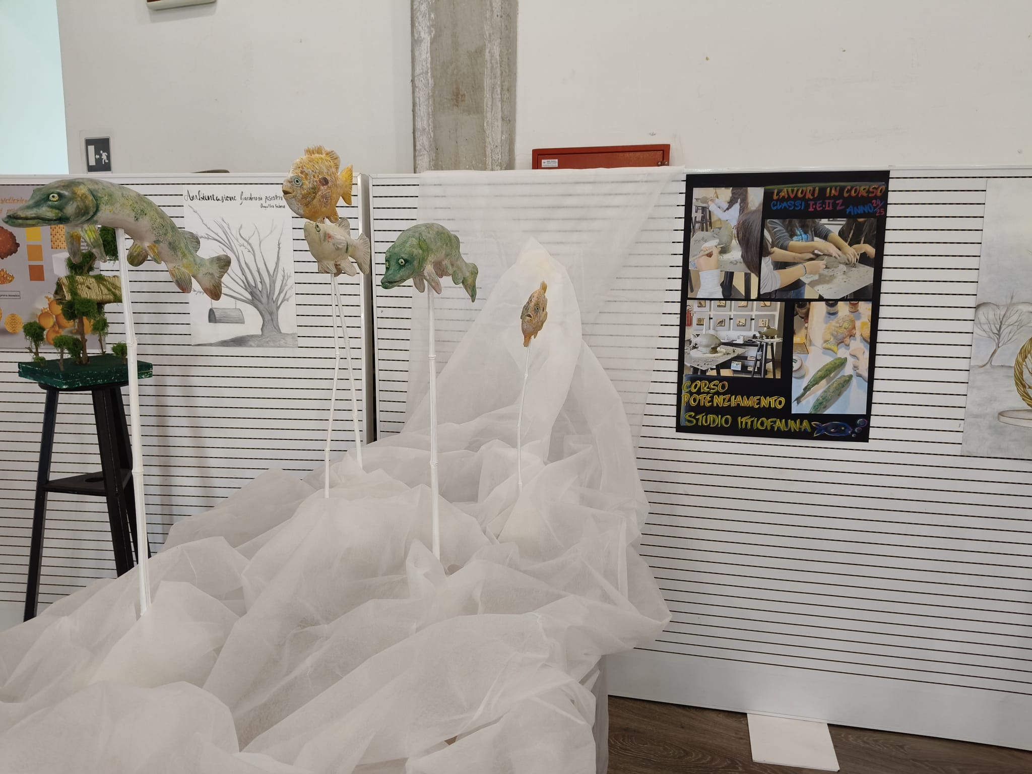 La mostra si sviluppa negli spazi rinnovati dell’Ex Consorzio, tra opere ceramiche dedicate all’avifauna e grandi pannelli murali che raccontano il paesaggio locale. Parte delle opere verrà installata nel futuro Giardino dei Pescatori, a testimonianza concreta del legame tra scuola e città.