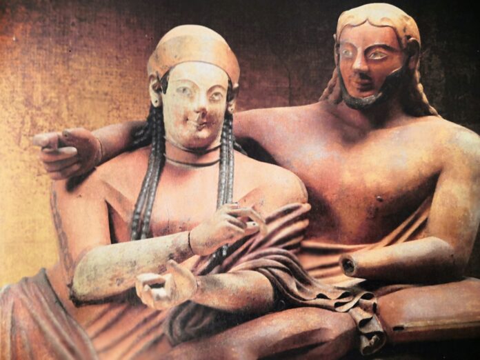 È iniziato pochi giorni fa il restauro del sarcofago della coppia di sposi che si trova a Villa Giulia, ritrovato molti anni fa a Cerveteri nella zona chiamata “Banditaccia”. Era infatti il 9 aprile del 1881 quando sono stati rivenuti alcuni reperti archeologici a Cerveteri, tra cui il sarcofago in questione dove é raffigurata la coppia di sposi. La raffigurazione rappresenta due coniugi dove lei è sul punto di versare del profumo nella mano del marito, che a sua volta l’abbraccia affettuosamente.