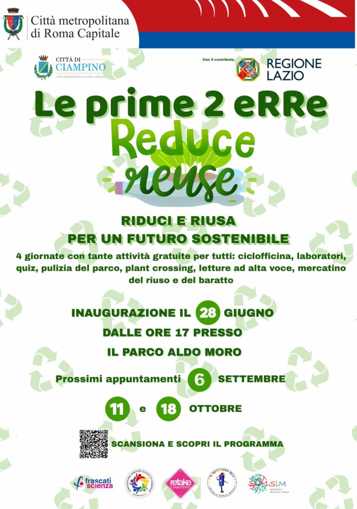 Si chiama “Le prime due erre: Riduci e Riusa per un futuro sostenibile” ed è il ciclo di eventi realizzato dal Comune di Ciampino: una campagna ambientale diffusa che si propone di coinvolgere attivamente cittadini e famiglie in una serie di eventi e iniziative concrete per promuovere la prevenzione della produzione dei rifiuti e il riutilizzo consapevole degli oggetti.