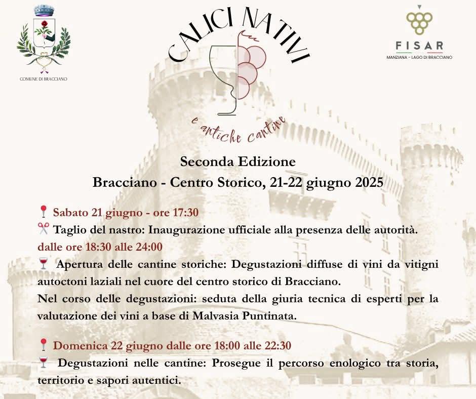 L’evento “Calici Nativi e Antiche Cantine”, è dedicato alla valorizzazione dei vitigni autoctoni del Lazio, con particolare attenzione al patrimonio storico, produttivo e culturale dell’area del Lago di Bracciano.