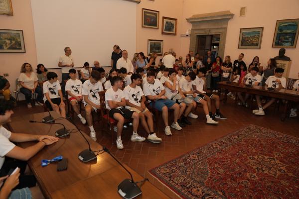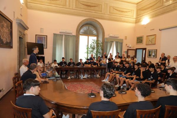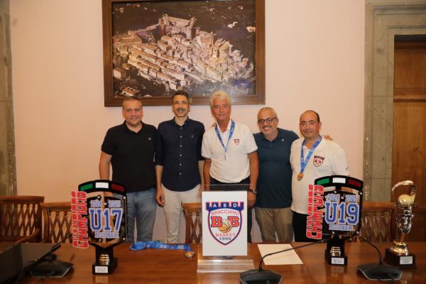 Nella sala consiliare di Bracciano il Sindaco Marco Crocicchi ha ricevuto Luciano Cioce, presidente dell’ASD Bracciano Basket, insieme alle squadre under 19 e Under 17 vincitrici entrambi del titolo di categoria (campioni regionali) e della squadra vincitrice del titolo CSI riservato alla categoria Juniores Provinciale (under 18).