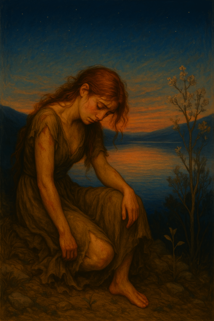 Una sola sfuggì, spinta dal sangue e dall’amore: la figlia della sacerdotessa, leggera di cuore. Corse nel bosco, i rami graffiavano il volto, le vesti semplici, la paura nel fiato. “Corri finché senti la mia voce”, diceva la madre, lontana, ma vicina.