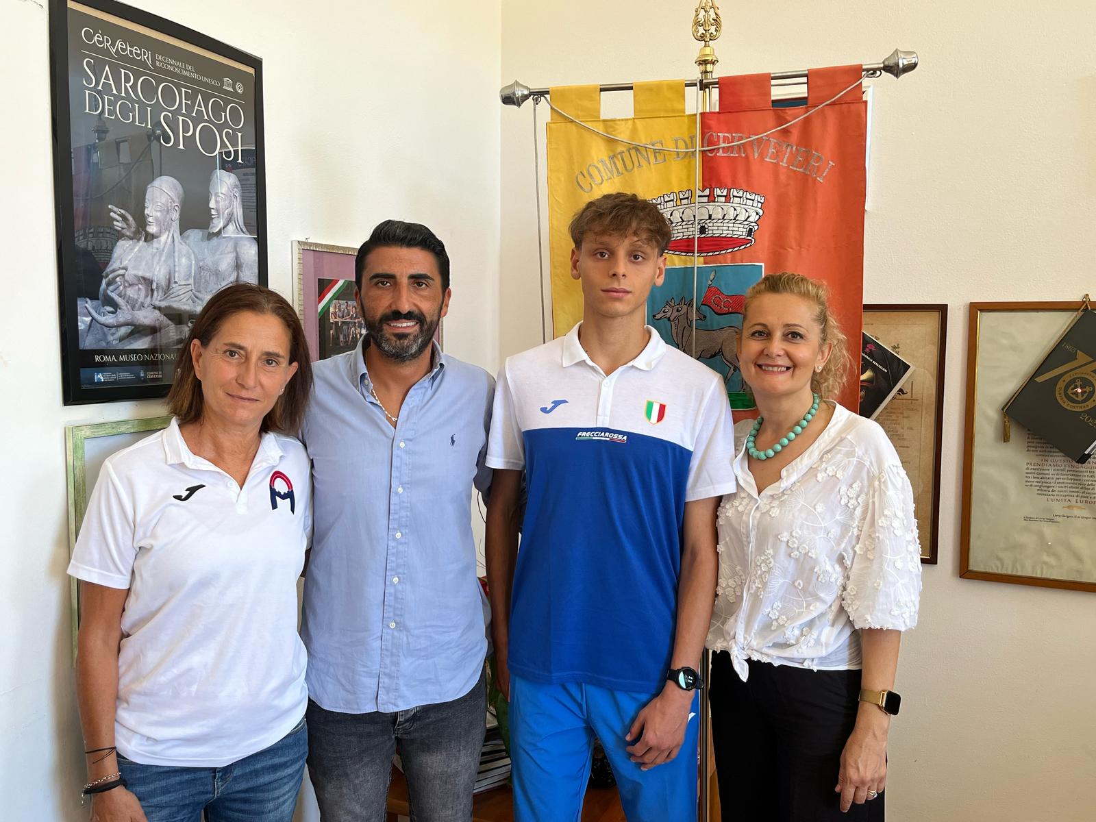 Per celebrare questo importante traguardo, il Sindaco di Cerveteri Elena Gubetti, insieme all’Assessore allo Sport Manuele Parroccini e al Consigliere comunale Enrico Alessandrini, ha ricevuto Francesco in Municipio, accompagnato dalla sua allenatrice e da numerosi compagni di squadra.
