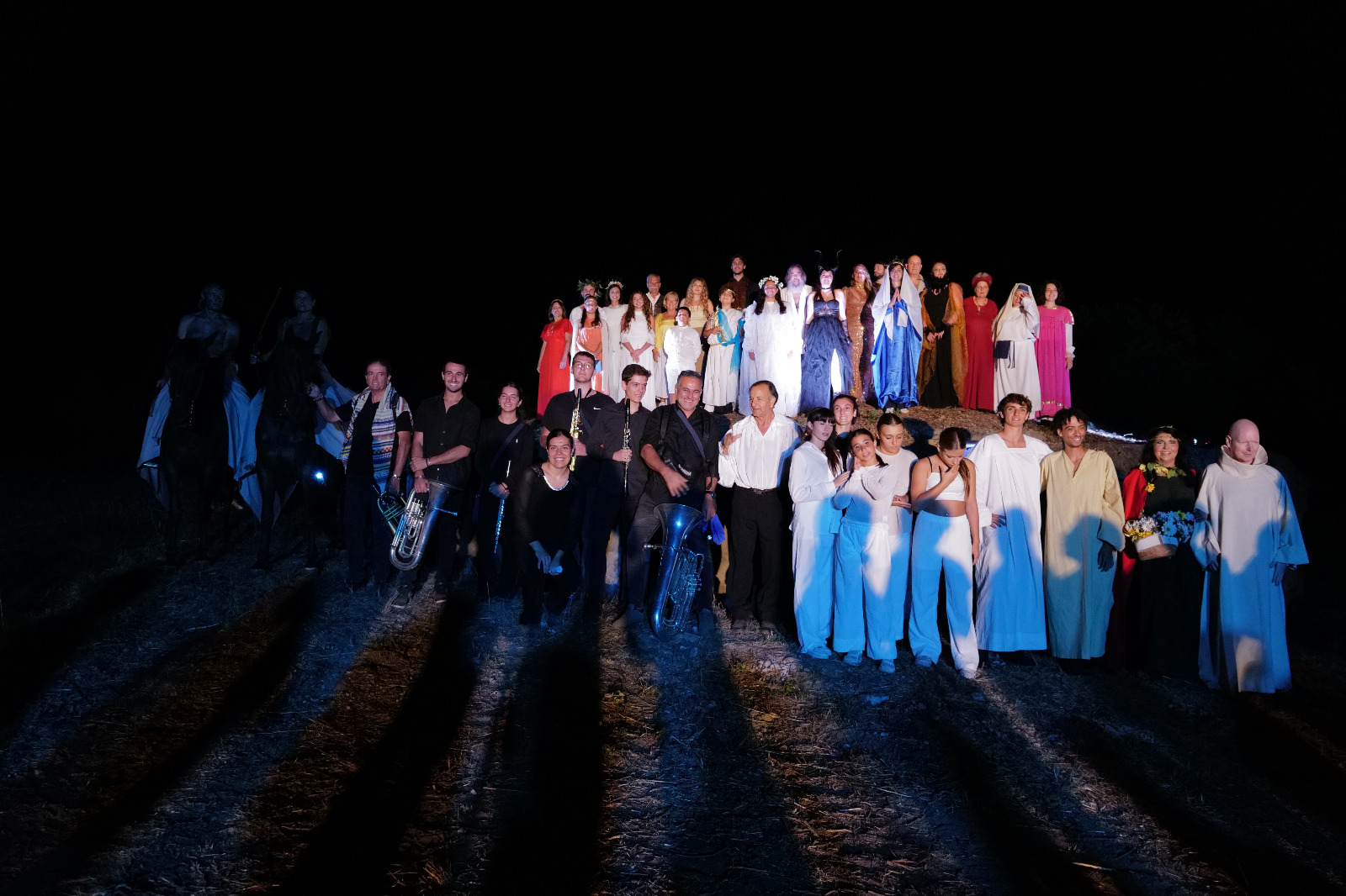 Tutti i ruoli, interpretati da attori professionisti o aspiranti, sono stati affiancati dai musicisti della Banda Musicale Giuseppe Verdi di Tolfa, diretti dal Sindaco Stefania Bentivoglio, dalle ballerine della scuola Obelix Danza Academy di Santa Marinella, la danza antica Zakiyyeh Nur e persino da due cavalli e i rispettivi abili compagni umani, un uomo e una donna,
