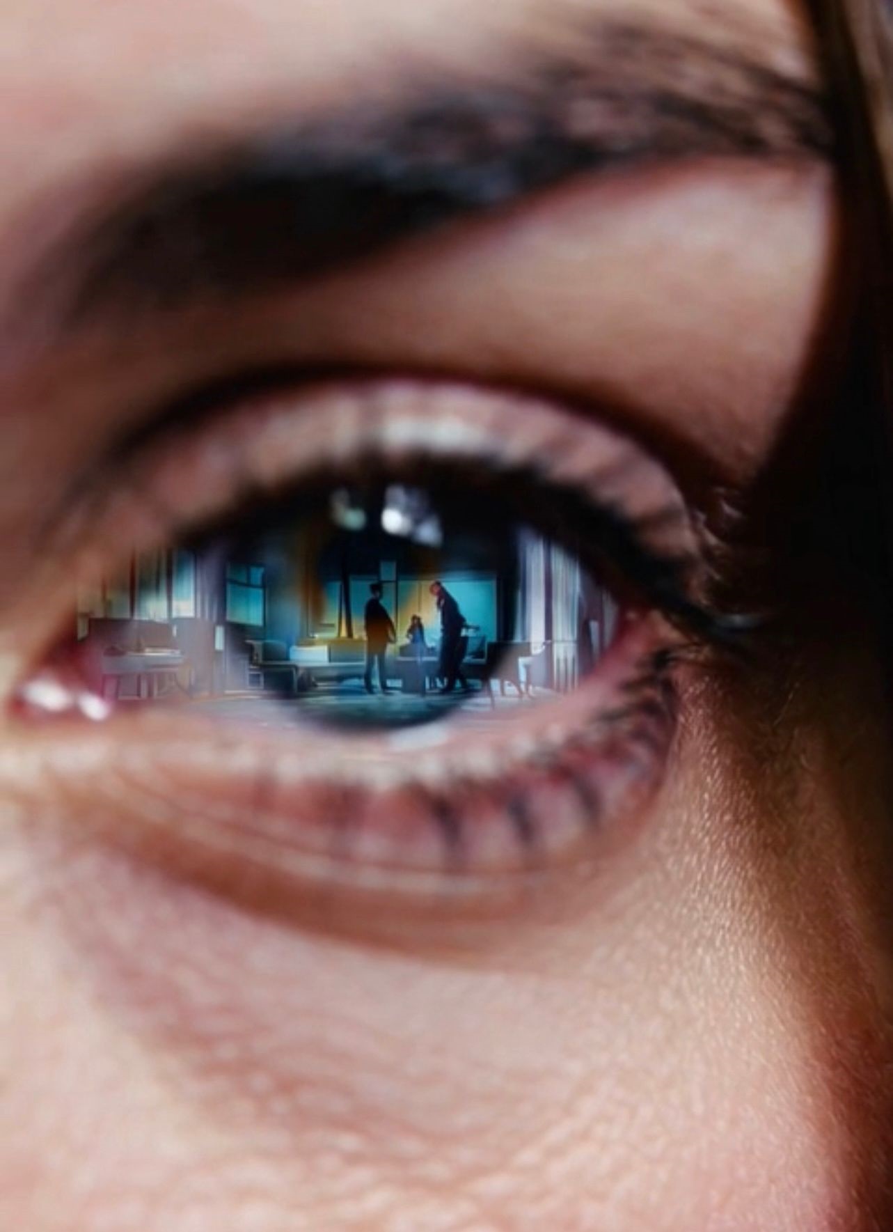 Guardando questa immagine, non possiamo fare a meno di chiederci cosa stia accadendo dentro chi osserviamo. Nel riflesso dell’occhio vediamo una scena: persone in una stanza, un dialogo, forse una tensione. La tentazione è immediata: pensare che lo stato d’animo di quella persona sia il semplice effetto di quell’evento…