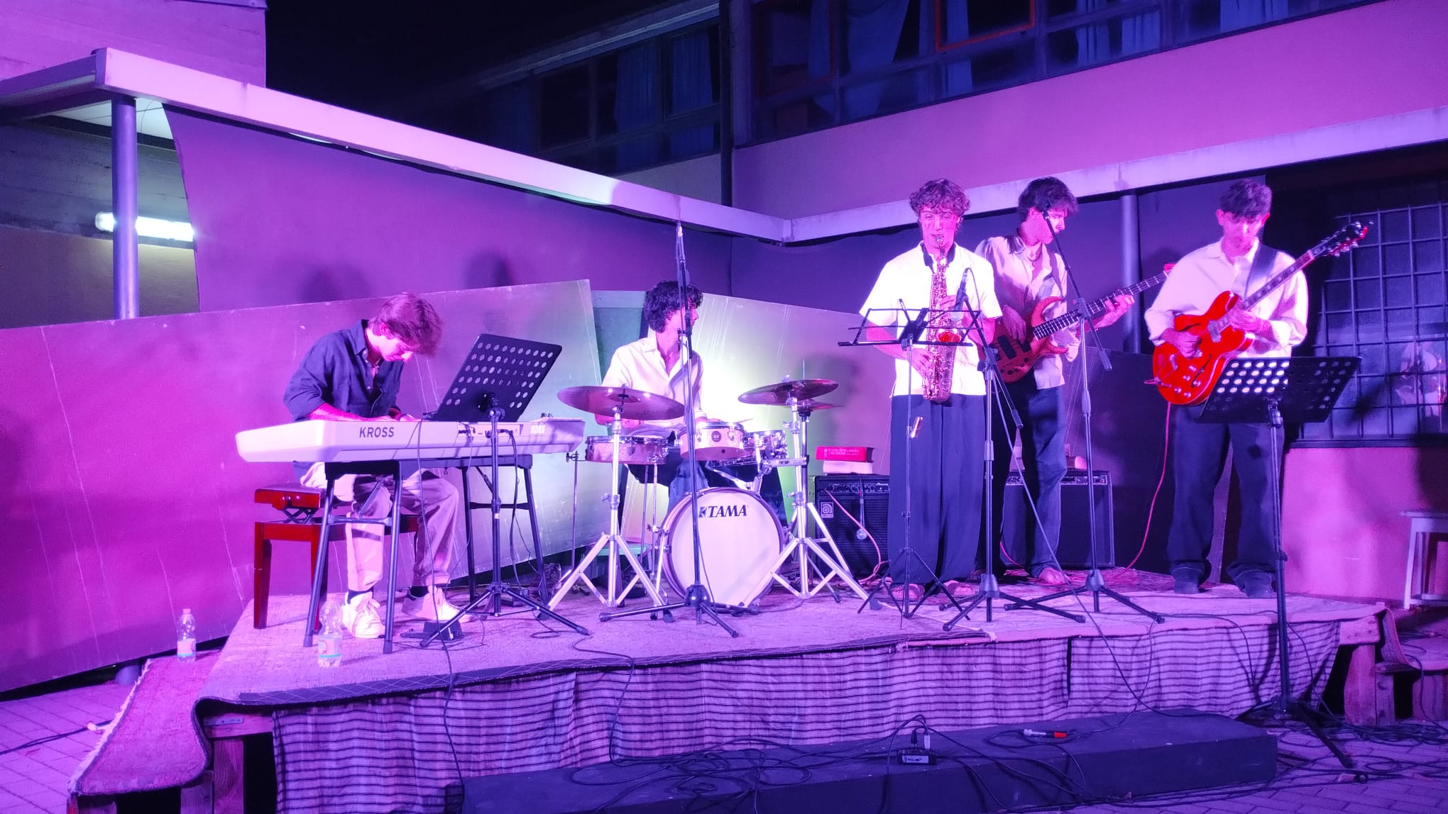 Dario Tocchet al piano, Nicolò Dilettuso alla chitarra, Francesco Topo Tonetti al sax, Folco Fioravanti al basso e voce e Federico Simone alla batteria, ci hanno deliziato con ritmi bepop, funk e jazz per più di un’ora e mezza, sempre perfettamente sincronizzati. Hanno mostrato una tecnica, accompagnata da una freschezza e da una visibile felicità nel suonare, che ha spazzato via, in pochi minuti, ogni piccolo dubbio sulla capacità di un gruppo di giovanissimi di suonare ritmi che difficilmente appartengono al bagaglio musicale di che sceglie, alla loro età, di presentare musica dal vivo. Il tempo è decisamente dalla loro parte e sentiremo ancora parlare di loro.