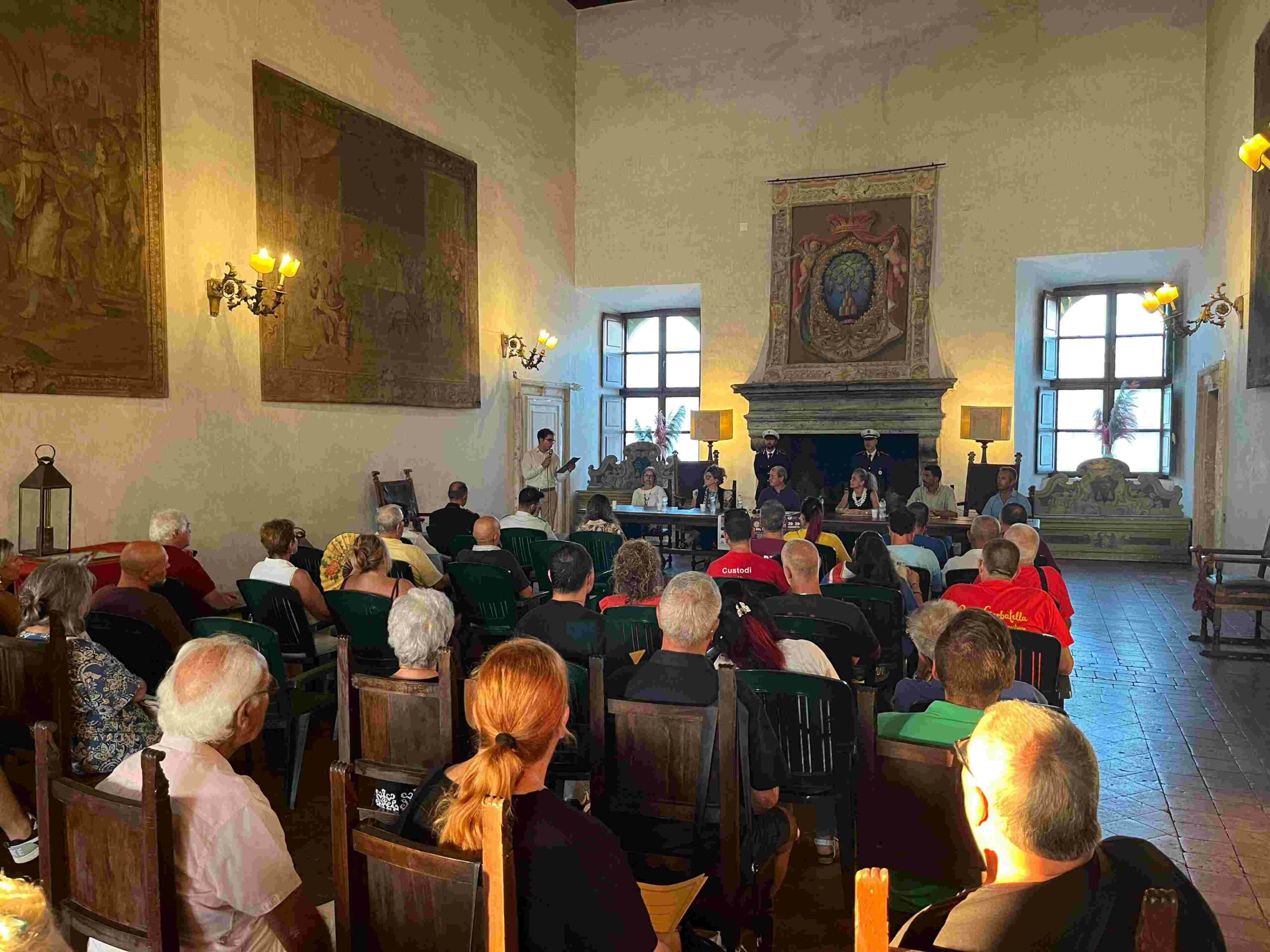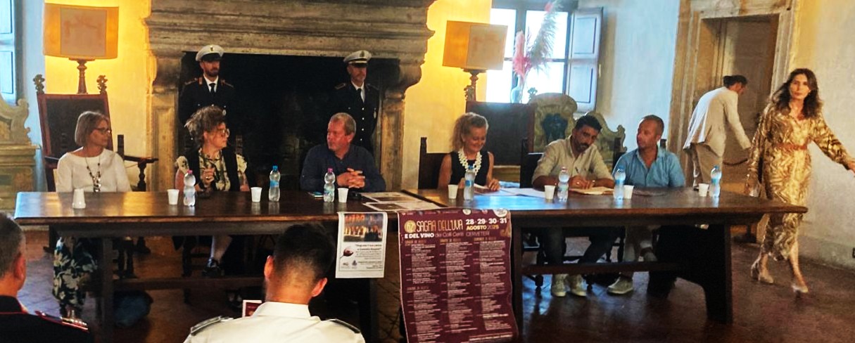 Il Sindaco Elena Gubetti ha aperto la conferenza stampa ringraziando la famiglia Ruspoli, i padroni di casa, che ha ospitato la conferenza stampa e aprirà le porte del proprio palazzo per visite guidate durante i giorni della sagra. Un gesto simbolico che sottolinea l’ospitalità e il legame profondo con la storia locale. Gubetti ha espresso orgoglio per un evento che coinvolge tutti i rioni, le forze dell’ordine, gli assessori, i volontari e quanti si sono adoperati e si adopereranno per l’organizzazione e per una accoglienza indimenticabile per chi verrà a visitare la cittadina etrusca, sottolineando come la sagra sia diventata una vera festa collettiva. Ha poi salutato tutti i presenti fra i quali numerosi giornalisti, consiglieri e normali cittadini.