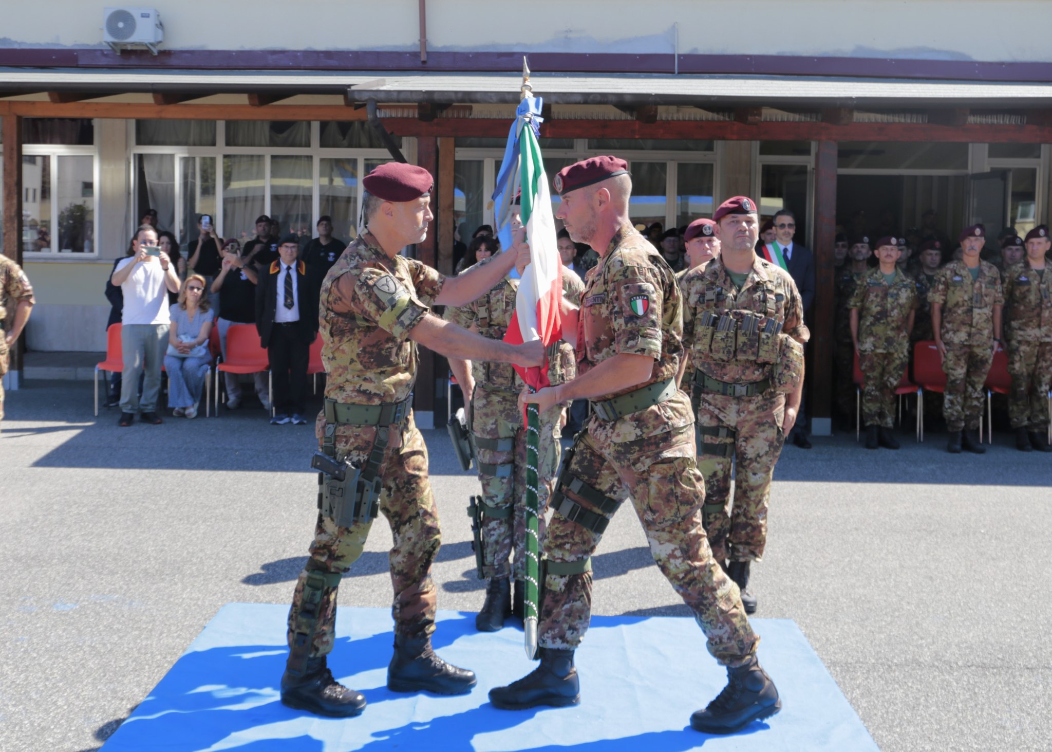 Bracciano, 5 settembre 2025. Presso la Caserma “Romano” ha avuto luogo la cerimonia di avvicendamento al comando del 185º Reggimento artiglieria paracadutisti “Folgore” tra il Colonnello Andrea Fiorentini, cedente e il Colonnello Alberto Licci, subentrante. Presenti all’evento il Comandante della Brigata Paracadutisti “Folgore”, Generale di Brigata Federico Bernacca, autorità locali del territorio e una rappresentanza delle Associazioni Combattentistiche e d’Arma.