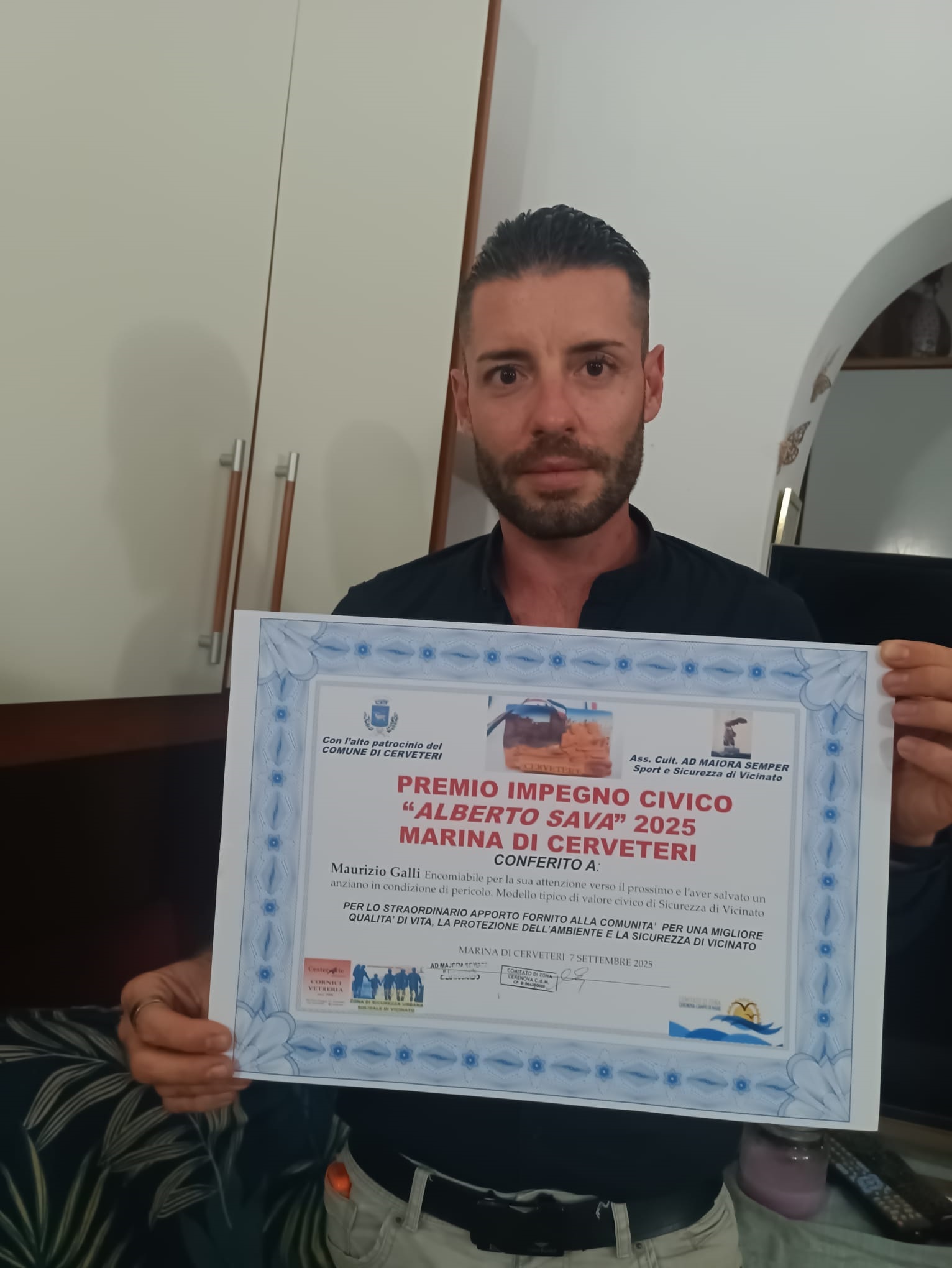 Alle 18 di domenica 7 settembre, sulla spiaggia di Marina di Cerenova, si è celebrata la 13^ edizione del Premio Impegno Civico “Alberto Sava”. Un’iniziativa dell’Ass. ad Maiora Semper sicurezza di vicinato e dal comitato di zona Cerenova Campo di Mare, che gode dell’alto patrocinio del Comune di Cerveteri e non ha alcun risvolto economico e politico.