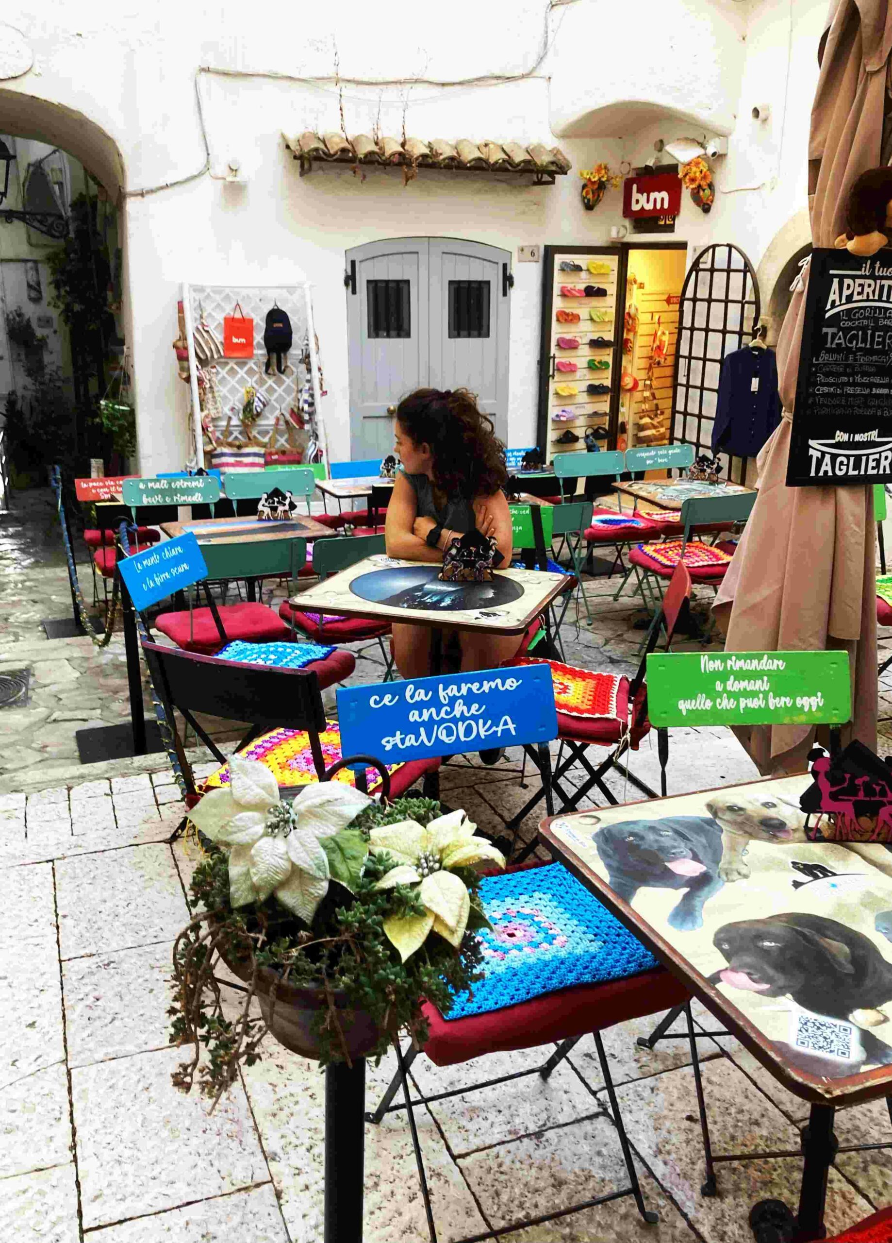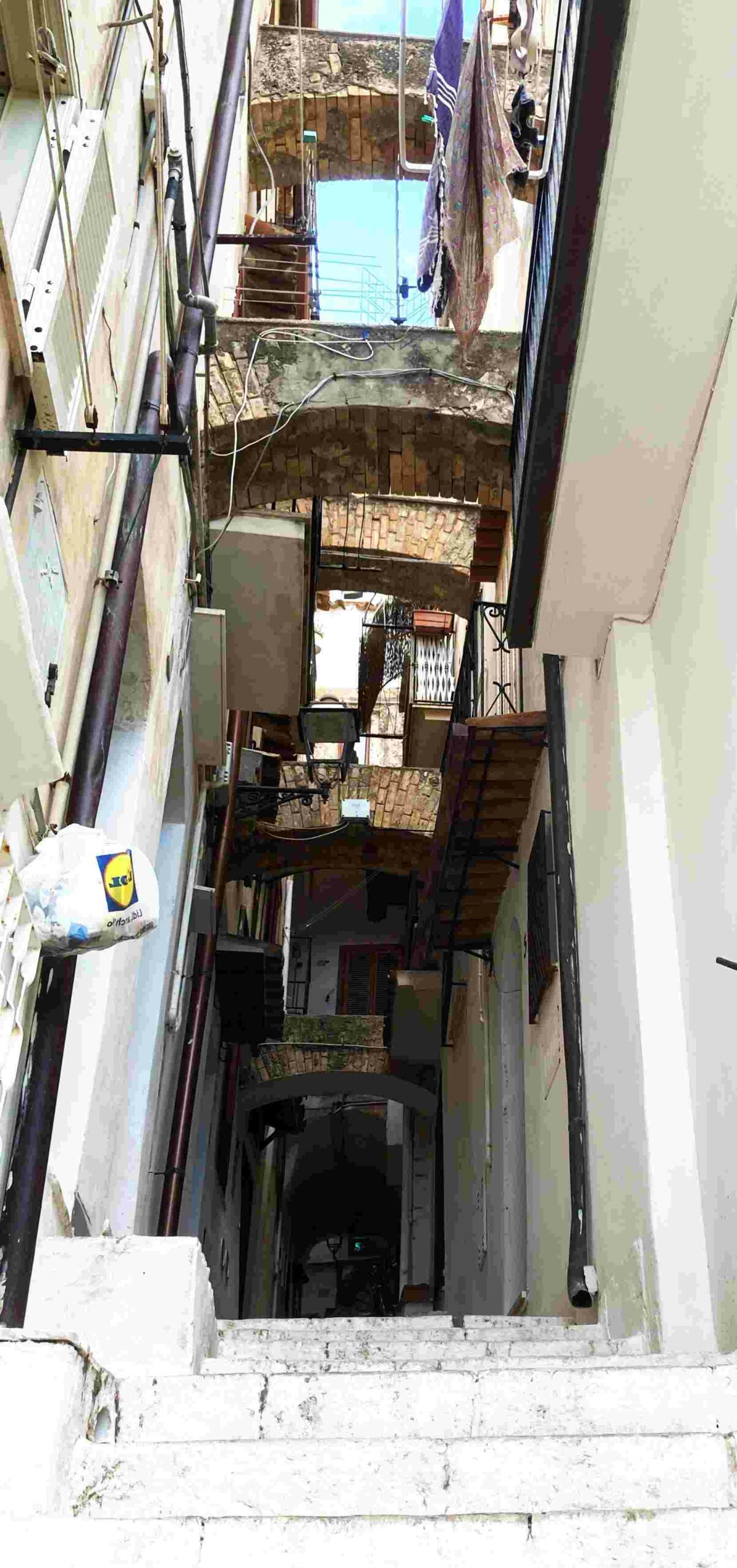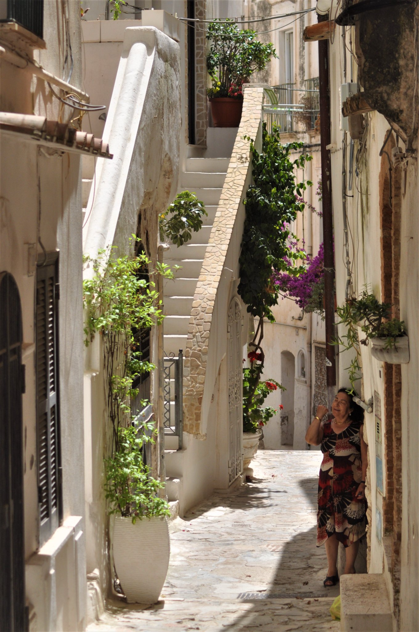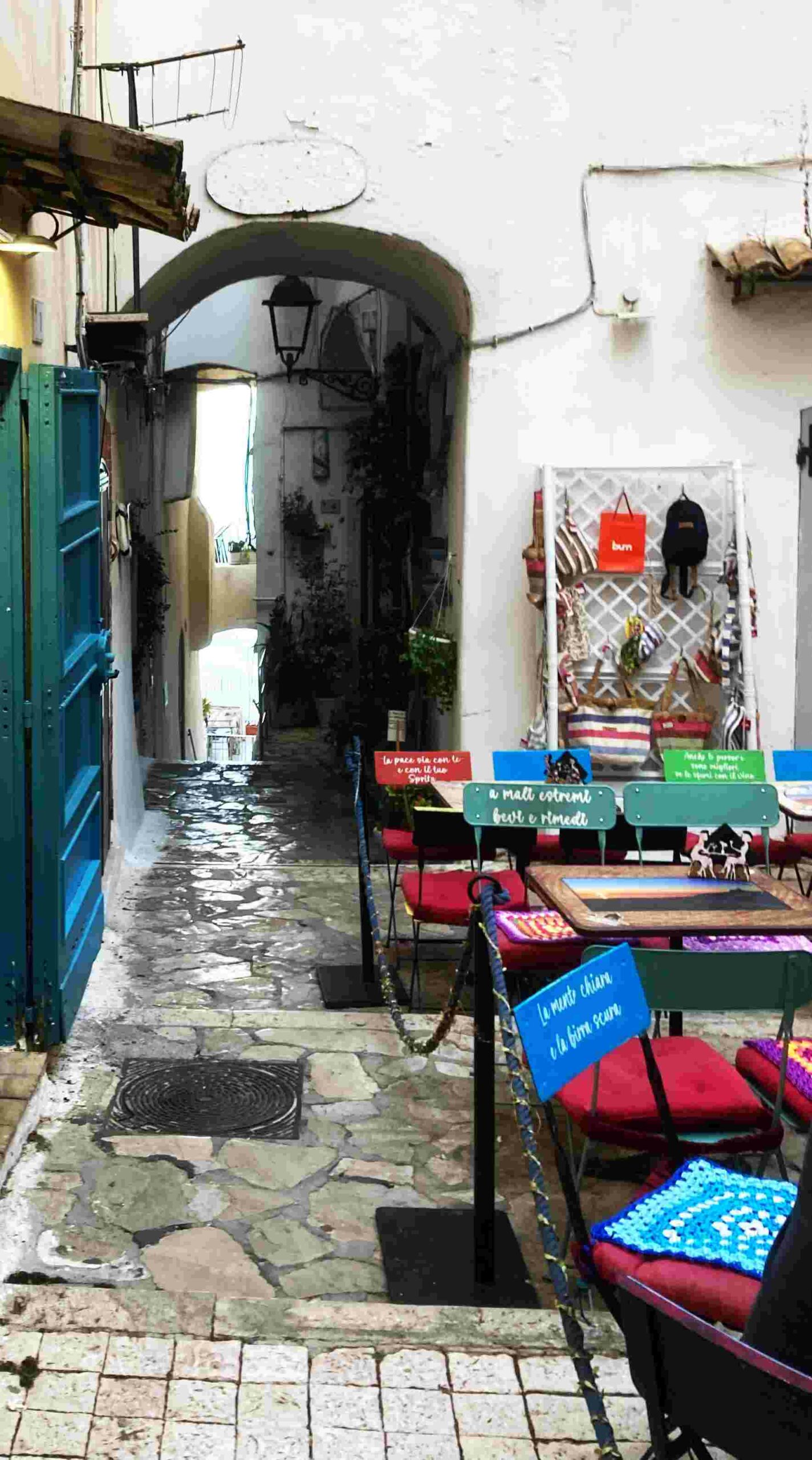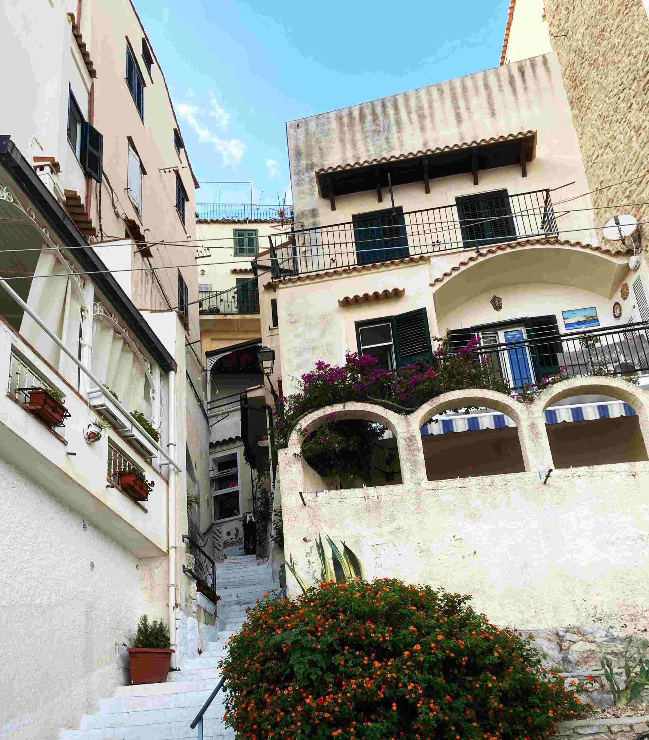 Le viuzze, strette e in discesa verso il mare, con gradini irregolari e antichi, si snodano tra case bianche e piazzette pittoresche. Ogni angolo è una scoperta, ogni scorcio una poesia. Mille dettagli, mille sfumature, conducono infine alla Torre Truglia, bianca e fiera, posta su uno scoglio all’estrema punta del promontorio, come sentinella del tempo.