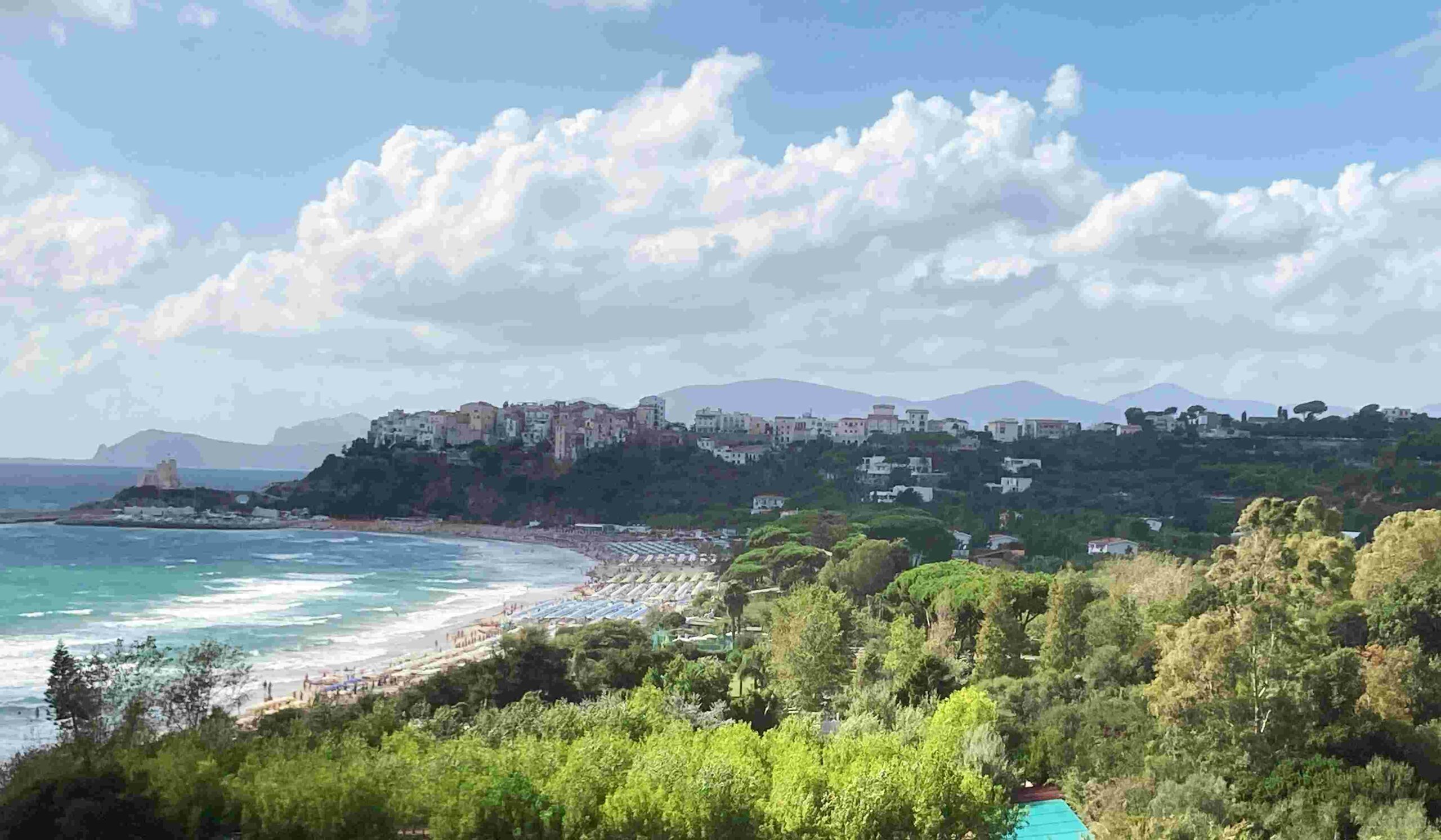 Nei giorni limpidi d’inverno, quando la foschia si ritira e il cielo si apre come un sipario, lo sguardo si spinge lontano: si scorgono il Vesuvio, Ischia, tutte le isole ponziane e il Circeo, che appare come un’isola sospesa, poiché la distanza nasconde il sottile legame con la terraferma.
