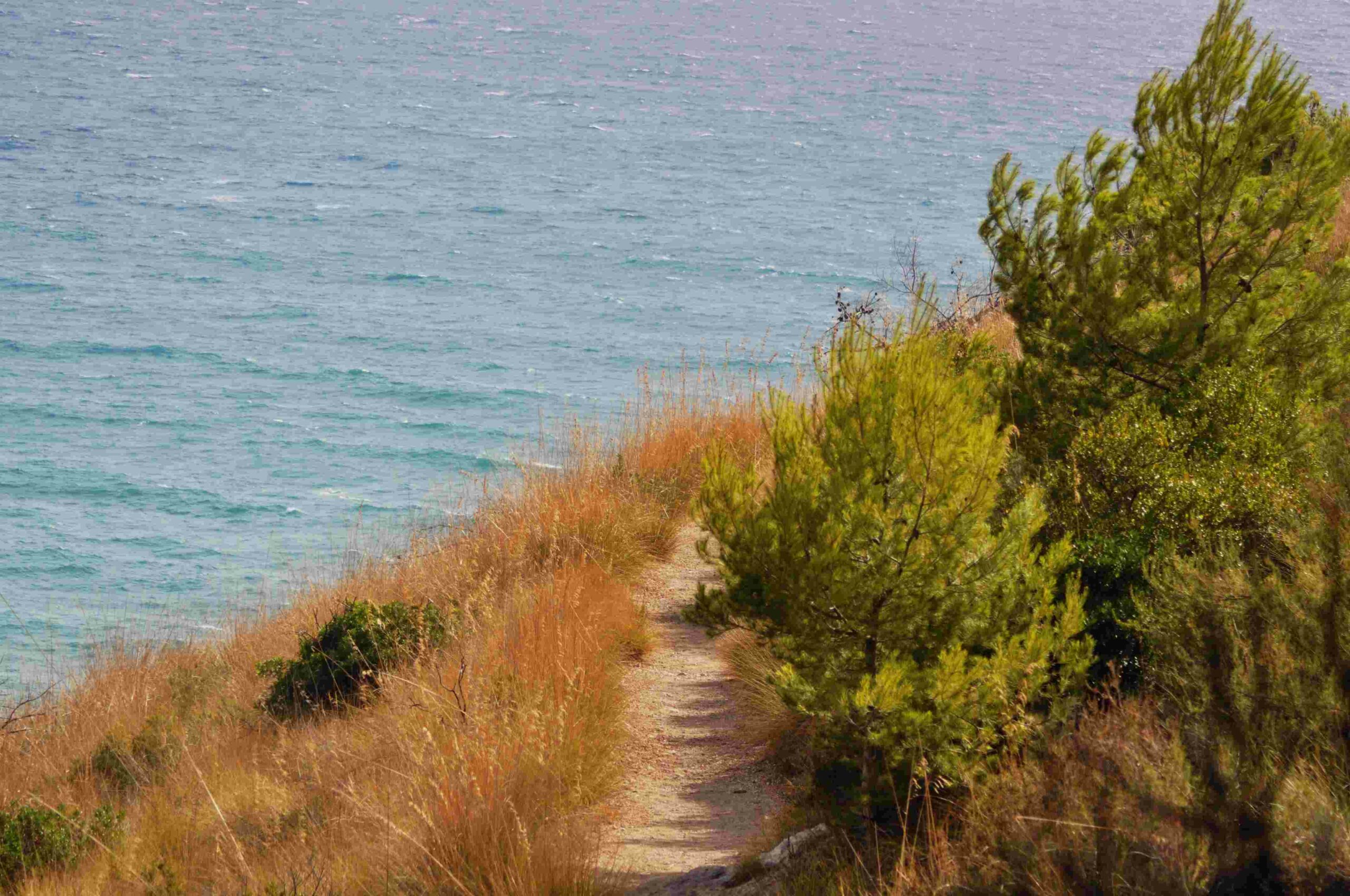 Il sentiero che si affaccia a levante regala panorami mozzafiato: spiagge di sabbia chiarissima, quasi dorata, accolgono le onde di un mare dai colori cangianti, che mutano con la luce e con l’anima di chi guarda.