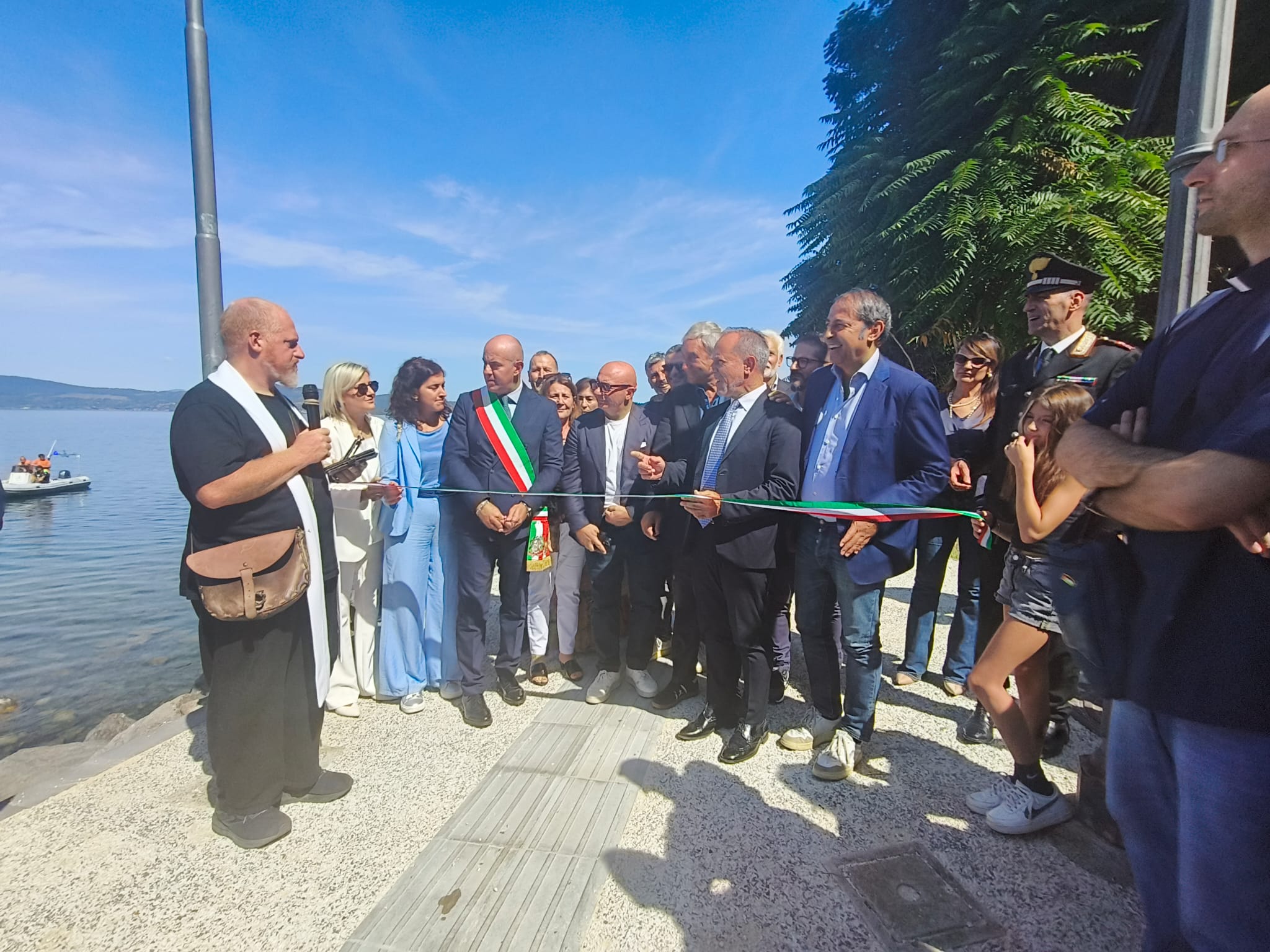 Una folla numerosa ha preso parte, la mattina del 13 settembre, all’inaugurazione della nuova Passeggiata sulle sponde del lago di Bracciano. Il percorso, che collega il centro storico al Giardino dei Pescatori, restituisce alla città un’area a lungo abbandonata al degrado e oggi trasformata in un suggestivo spazio naturalistico. Realizzato in collaborazione con la Sovrintendenza e il Parco naturale, l’intervento integra paesaggio e ambiente, valorizzando l’identità storica del borgo e offrendo a cittadini e visitatori un luogo finalmente fruibile e accogliente.