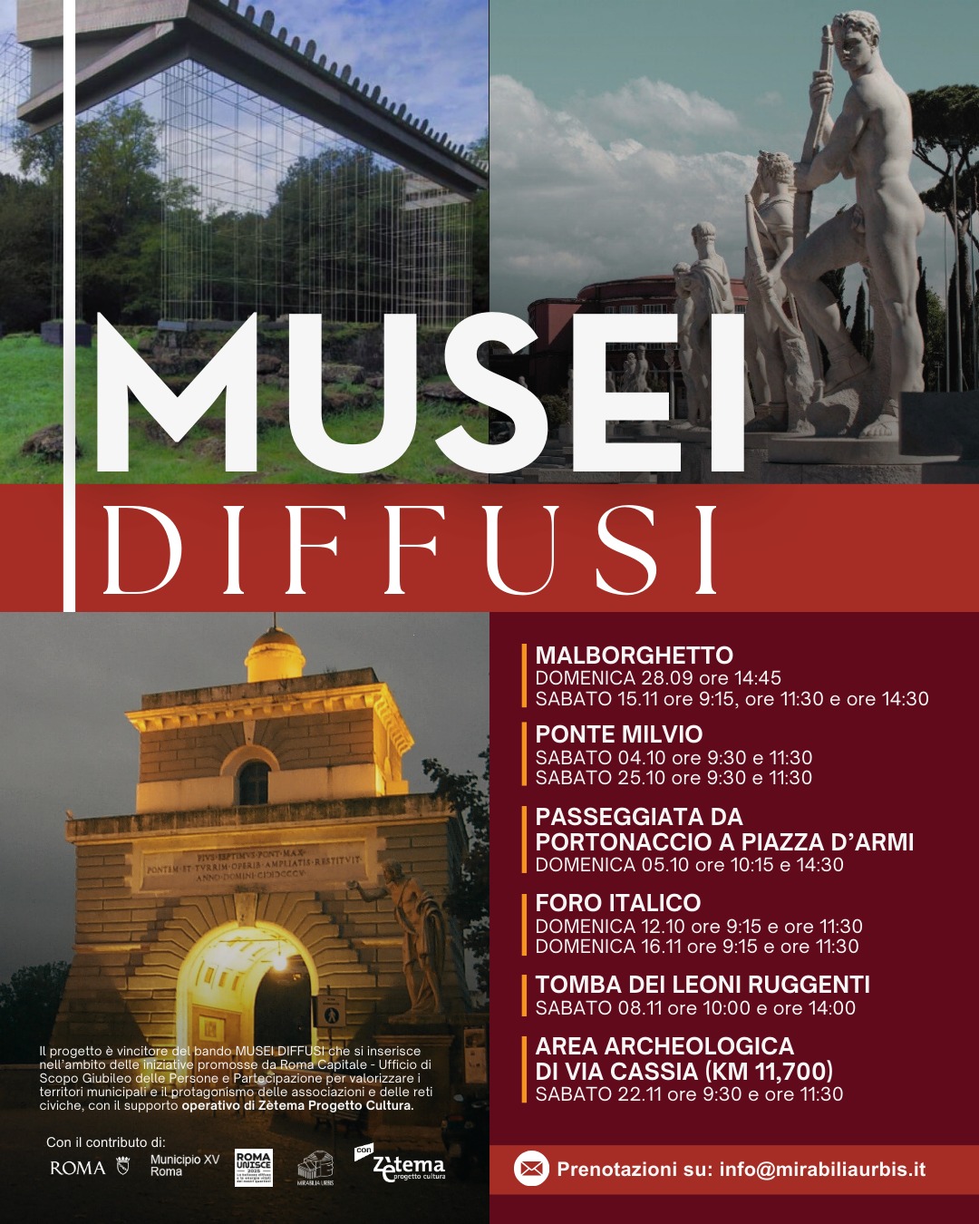 “Per Roma Unisce 2025, il programma proposto dall’Ufficio di Scopo Giubileo delle Persone e della Partecipazione, e nell’ambito delle progettualità dei Musei Diffusi e di Sport Inclusivo con Zetema Progetto Cultura, da domenica 28 settembre a sabato 22 novembre, saranno nove gli appuntamenti gratuiti organizzati dall’Associazione Mirabilia Urbis con il Municipio XV alla scoperta del nostro esteso territorio.