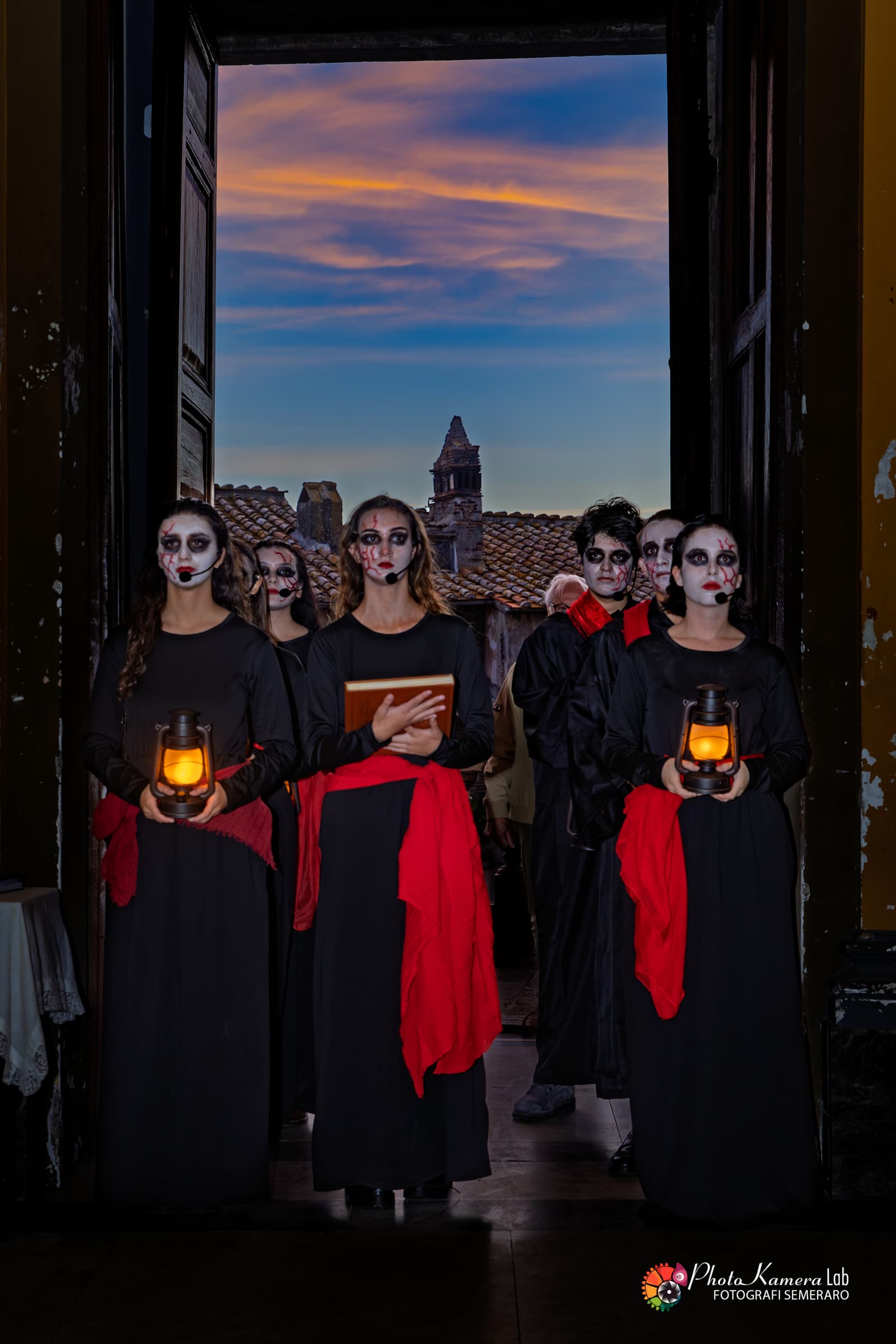 La regia dello spettacolo di Melania Codella ha guidato con sapienza la partecipazione degli allievi della scuola KeyMusic: interpretando le anime della 8^ bolgia dantesca, i giovani attori accoglievano  i numerosi spettatori  già dalla scalinata di accesso alla Collegiata con i loro moniti ,sussurrati, come le fiammelle parlanti  descritte nel Canto.