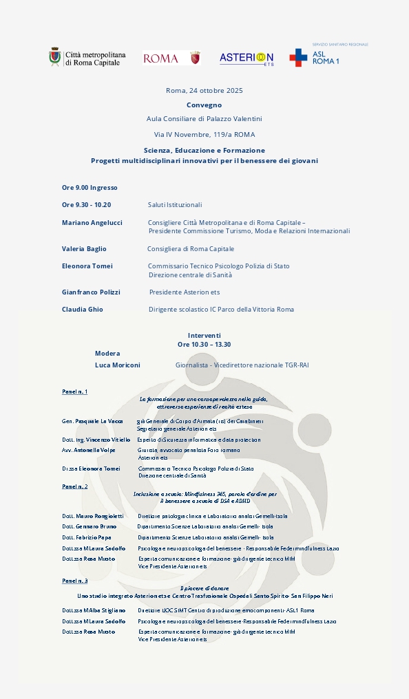Intervengono rappresentanti di Roma Capitale, del Ministero dell’Istruzione, della Polizia di Stato e di Asterion ETS.