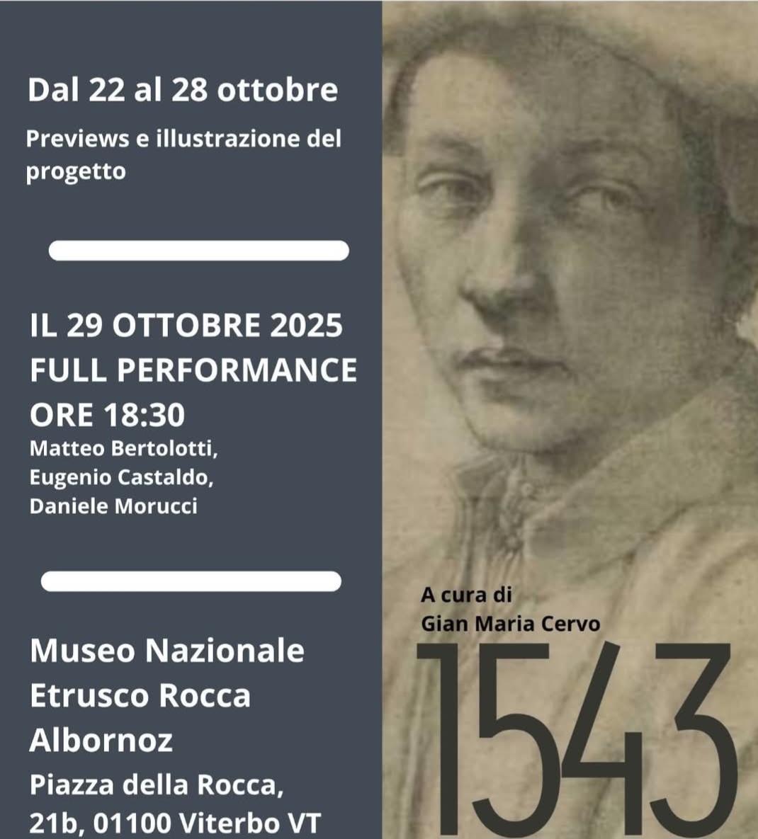 Dopo alcune preview a partire da oggi 24 ottobre aperte al pubblico, il 29 ottobre alle ore 18:00 presso i locali del mezzanino va in scena l’evento “1543”  di Gian Maria Cervo con Matteo Bertolotti ed Eugenio Castaldo disegni di Daniele Morucci