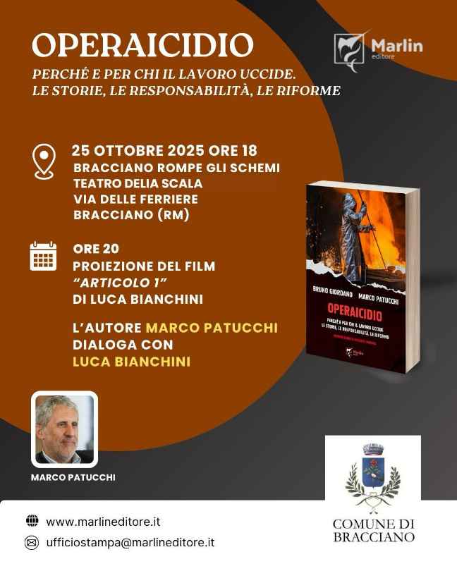 HomeCultura Presentazione a Bracciano del libro di Patucchi “Operaicidio” 24/10/2025 0 283 E-mailTwitterWhatsAppFacebookPinterestLinkedinReddItTumblrTelegramViberStampa Riceviamo e pubblichiamo TagsBraccianolibroOperaicidioPatucchipresentazionescalateatro Condividere E-mailTwitterWhatsAppFacebookPinterestLinkedinReddItTumblrTelegramViberStampa Articolo precedenteABI e A.D.S.I. firmano il Protocollo d’Intesa per la valorizzazione del patrimonio culturaleArticolo successivoTra sabato e domenica il ripristino dell’Ora Solare Ultimi articoli Eventi Santa Barbara celebrata oggi a Bracciano Eventi Musica e solidarietà a Montevirginio con Demo Morselli e Marcello Cirillo Eventi Civitavecchia accoglie la Fiamma Olimpica: domenica 7 dicembre un grande evento per la città Cultura Civitavecchia il 9 Dicembre – IL CINEMA DEL FUTURO: FuoriCorti e 24 Frame Al Secondo Società A Roccagiovine apre il cantiere del nuovo centro sportivo: un’area pubblica restituita alla comunità Carica altri
