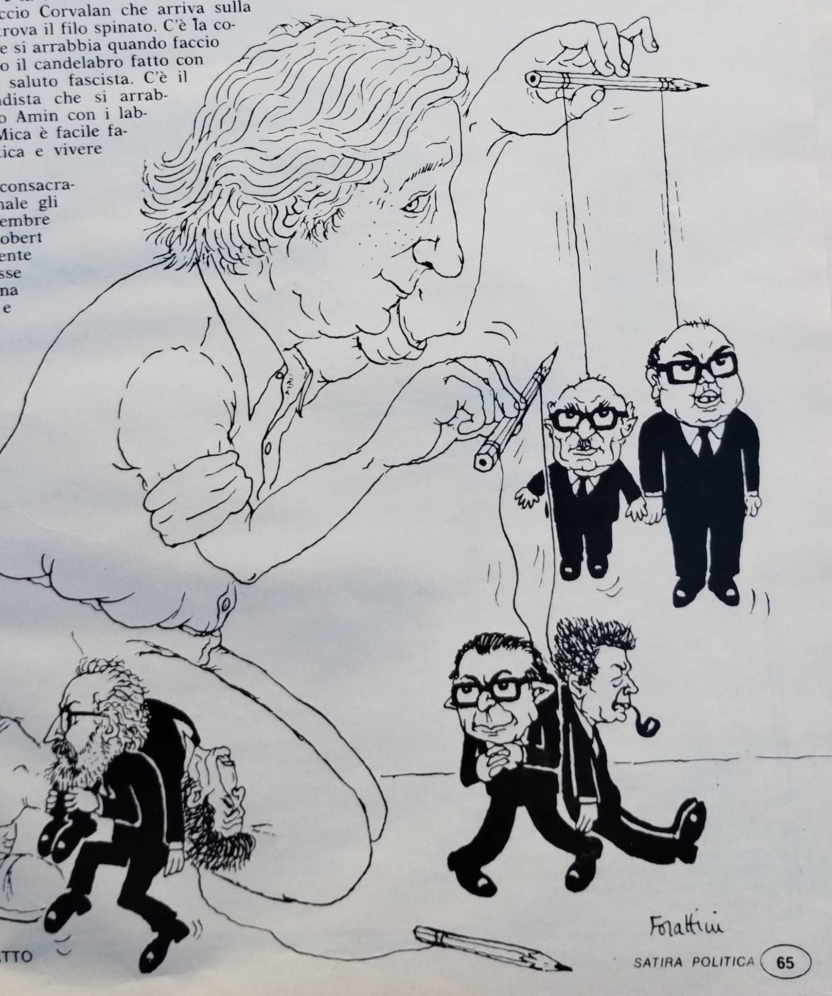 La notizia della morte di Giorgio Forattini non è stata, visti i suoi novantaquattro anni, un fulmine a ciel sereno ma è stata un lampo che ha illuminato una parte della nostra vita, soprattutto un flash sulla nostra giovinezza. Sono tornati alla mente, improvvisamente, i tempi in cui, tutte le mattine, la prima cosa che osservavamo, sulla prima pagina del quotidiano La Repubblica, era la vignetta satirica del celebre disegnatore che, come affermava il suo direttore Eugenio Scalfari, “è qualcosa di diverso da una semplice illustrazione di satira politica; in realtà è un articolo di fondo espresso per immagini”. Per noi era un’esigenza quotidiana, avevamo la necessità di capire immediatamente cos’era successo il giorno prima, sapendo che avrebbe provocato in noi un piacevole sorriso, a volte frenato quando la satira colpiva i leader politici vicini a noi, ma non era lui a sbagliare. La satira è un ottimo esercizio di democrazia e l’abitudine ad essa non sempre è facile da digerire, necessita di un quotidiano allenamento. Forse, anche per questo motivo, Giorgio Forattini lo avevamo perso di vista e forse proprio per questo motivo c’è voluta la notizia della sua morte per illuminare, come un lampo, alcune dinamiche di quel preciso periodo storico in cui era l’indiscusso protagonista della satira e che abbiamo, colpevolmente, dimenticato.