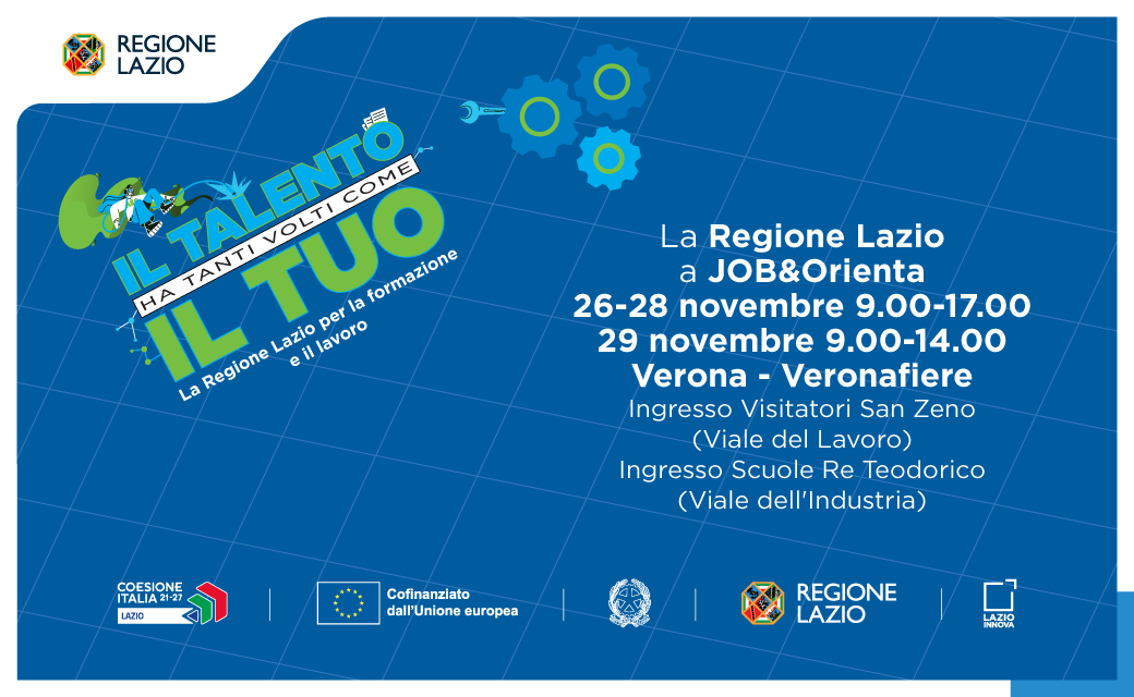 Dal 26 al 29 novembre 2025 la Regione Lazio partecipa alla Fiera JOB&Orienta – Salone Orientamento Scuola Formazione Lavoro, presso VeronaFiere. L’evento rappresenta il principale appuntamento nazionale dedicato all’orientamento, alla formazione e alle opportunità professionali per studenti, famiglie e operatori del settore.