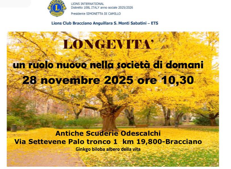 Il 28 novembre dalle ore 10 , presso le Scuderie Odescalchi di Bracciano (RM) , organizzata dal Lions Club di Bracciano Anguillara Sabazia e Monti Sabatini , si svolgerà una giornata di studio sul tema della “silver economy” e sul ruolo che la fascia anziana della popolazione può svolgere a vantaggio della società .